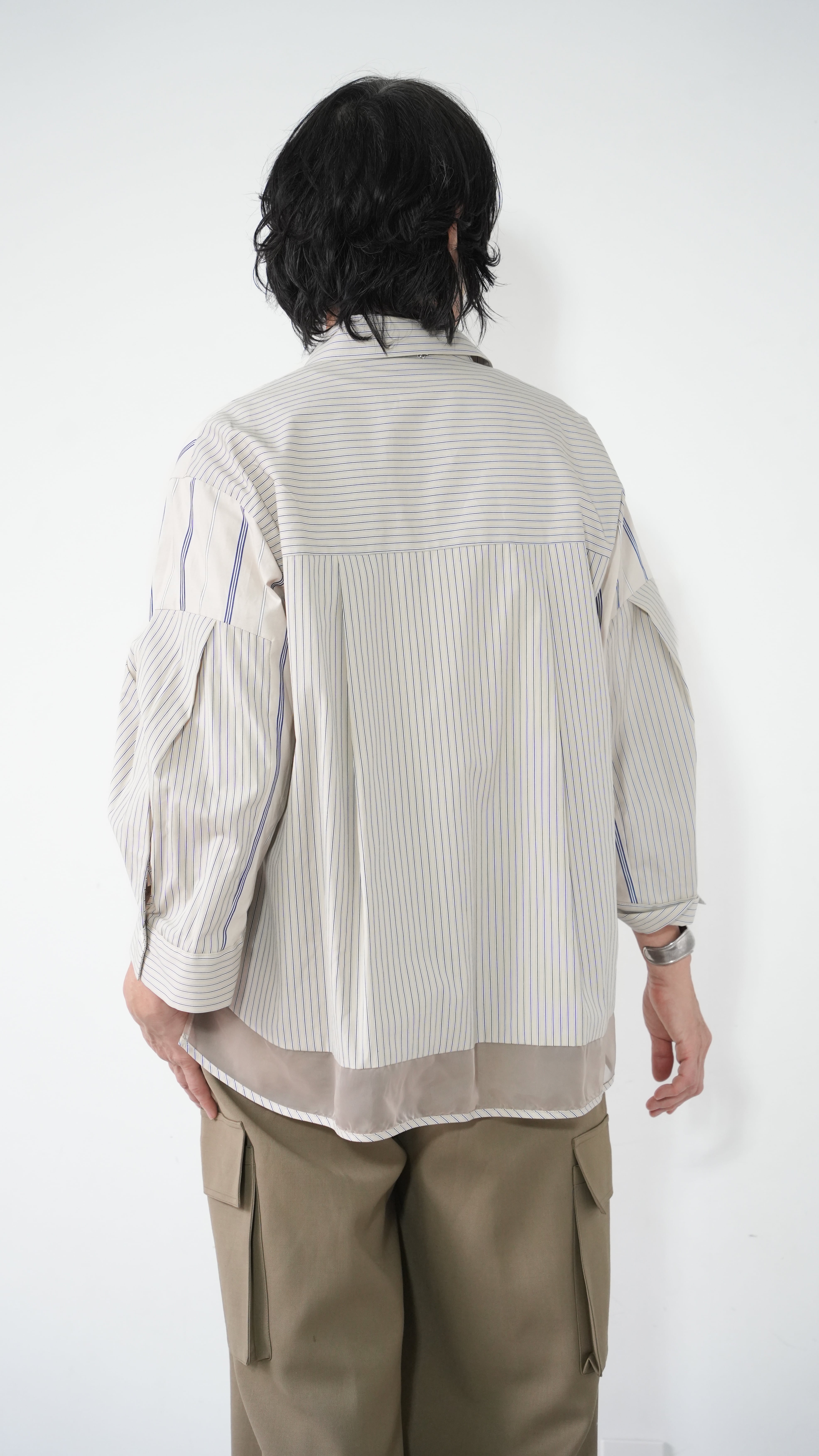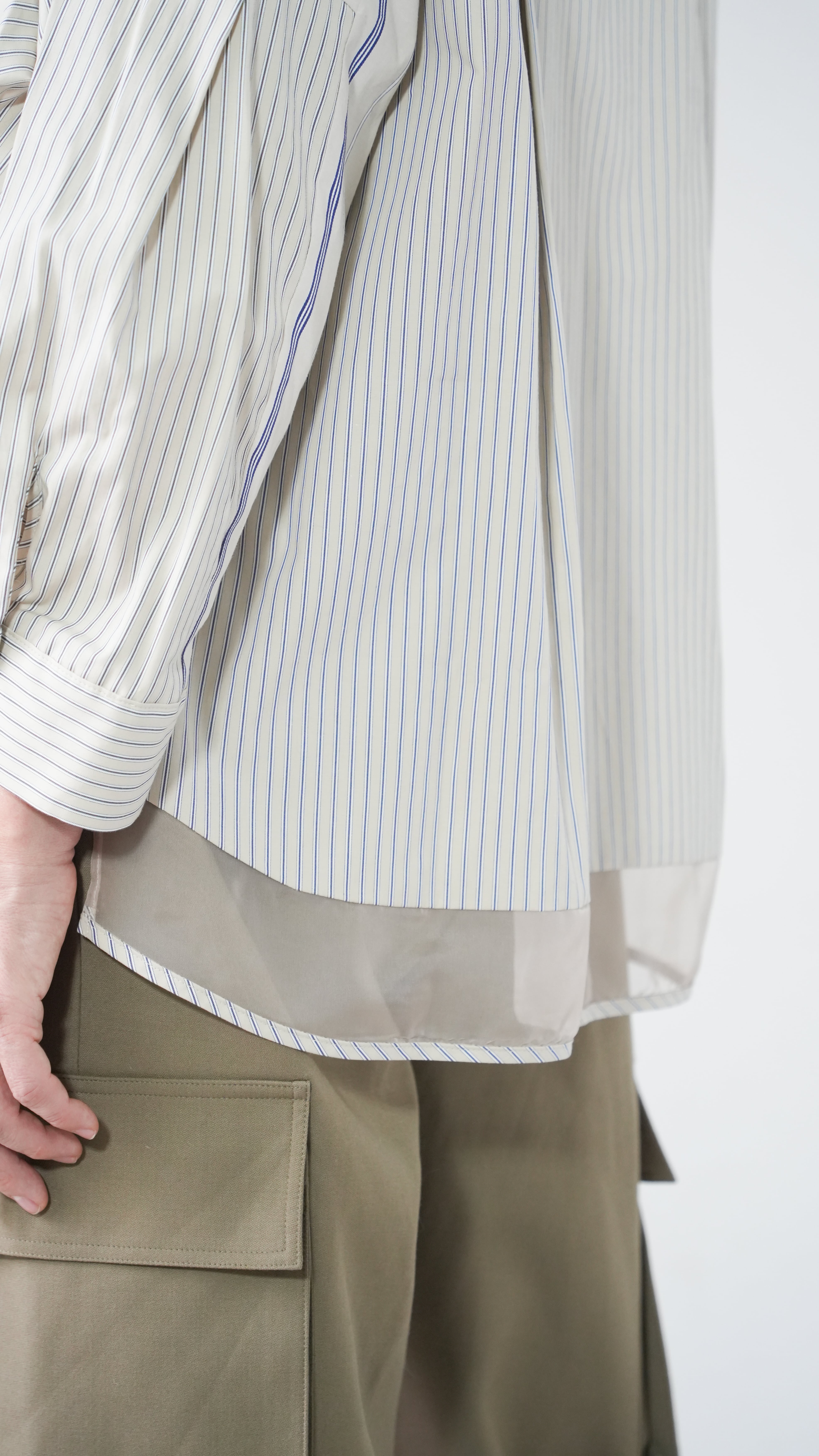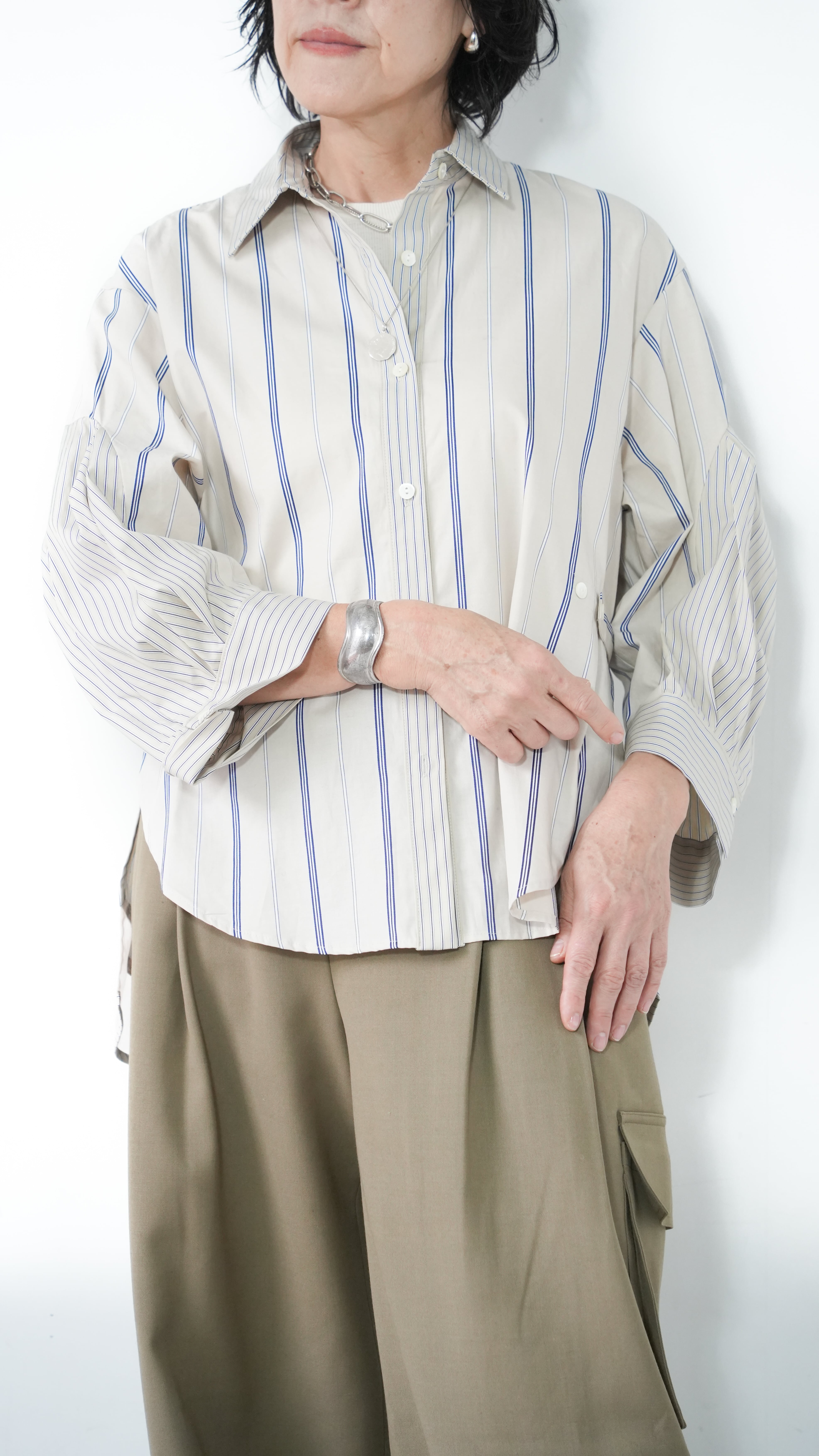 ●Mixed stripe tuck sleeve shirt(BULE)