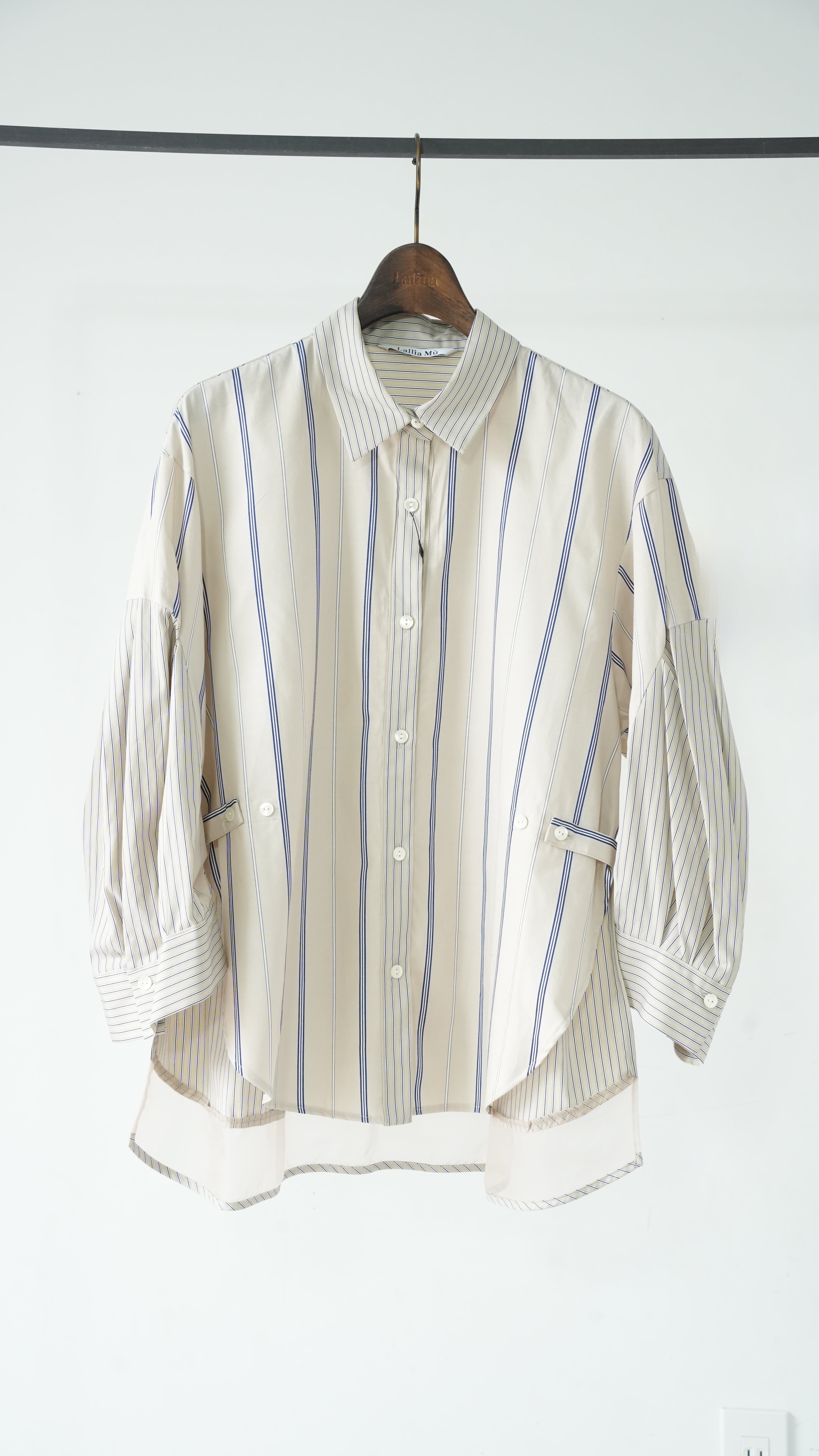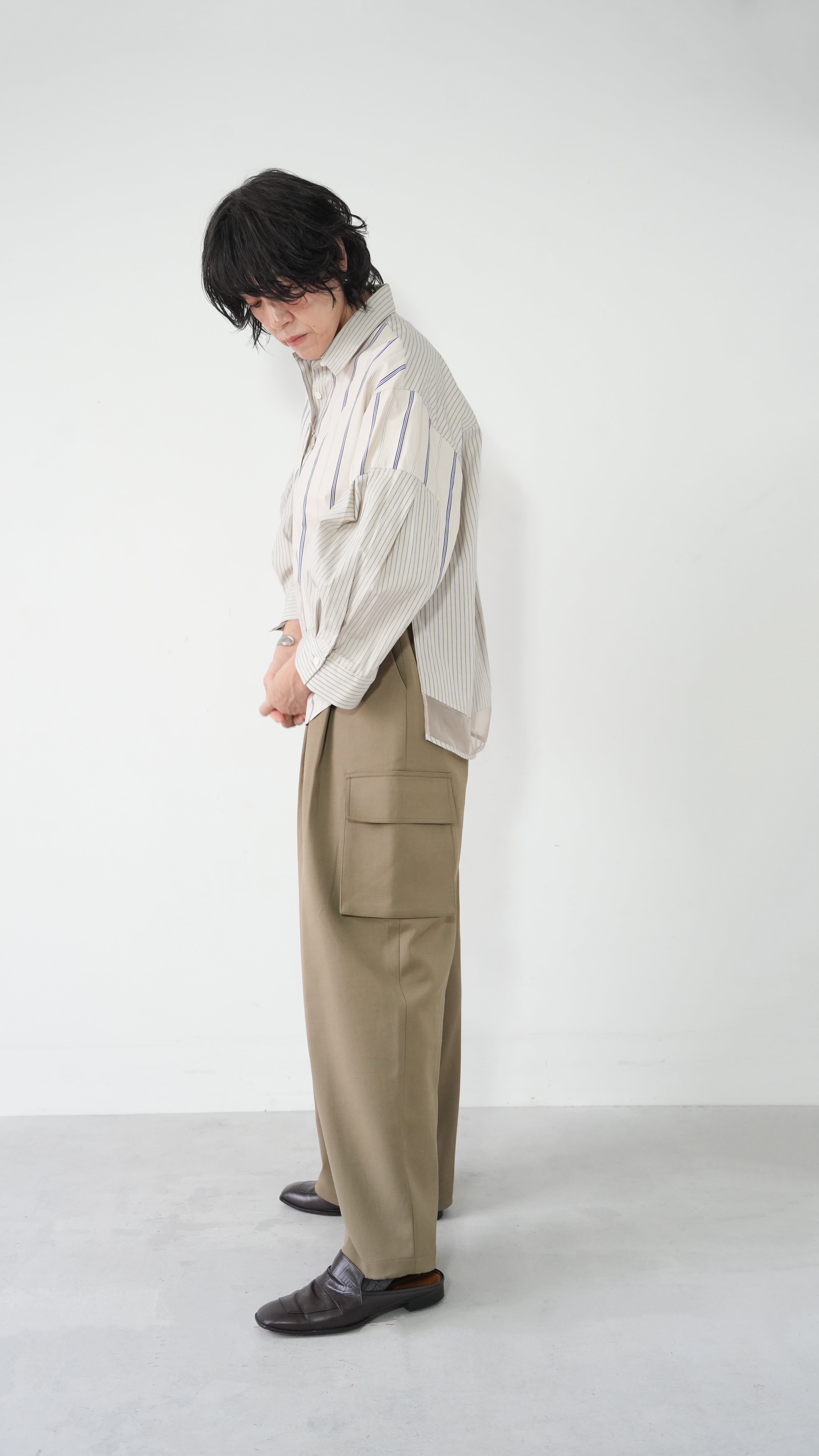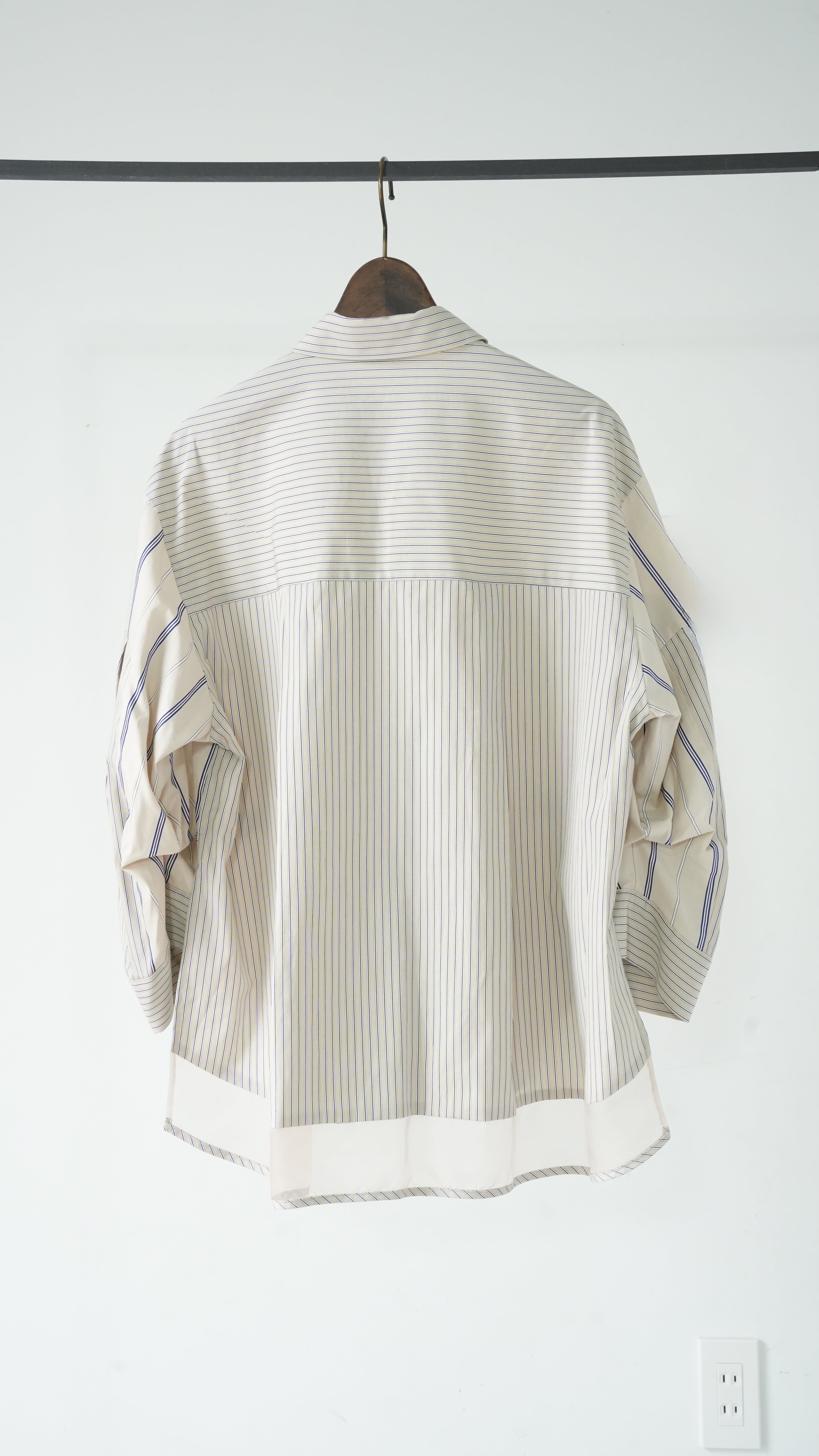 ●Mixed stripe tuck sleeve shirt(BULE)