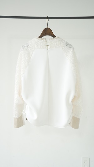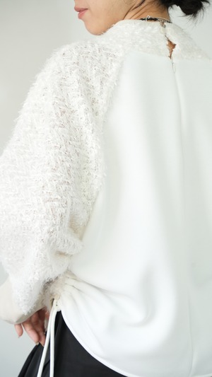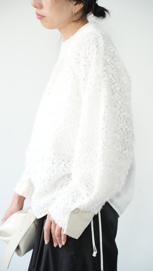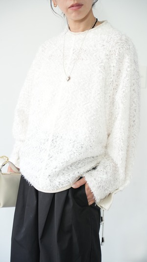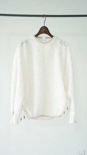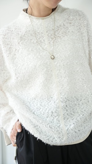 チュールにセンター刺繍を施し、ふわりとしたシャギーの表情を加えたシアープルオーバー。