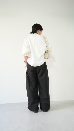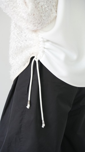 サイドにはドローストリングを施し、シルエットや丈感をお好みに調整していただけます。