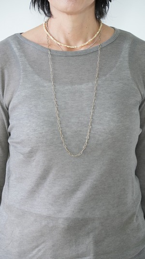 セーターの中に着、袖口や裾から別のカラーが見えるようにレイヤードしたり、体のラインを拾いすぎないサイズ感で1枚で着てもサマになるアイテムです。