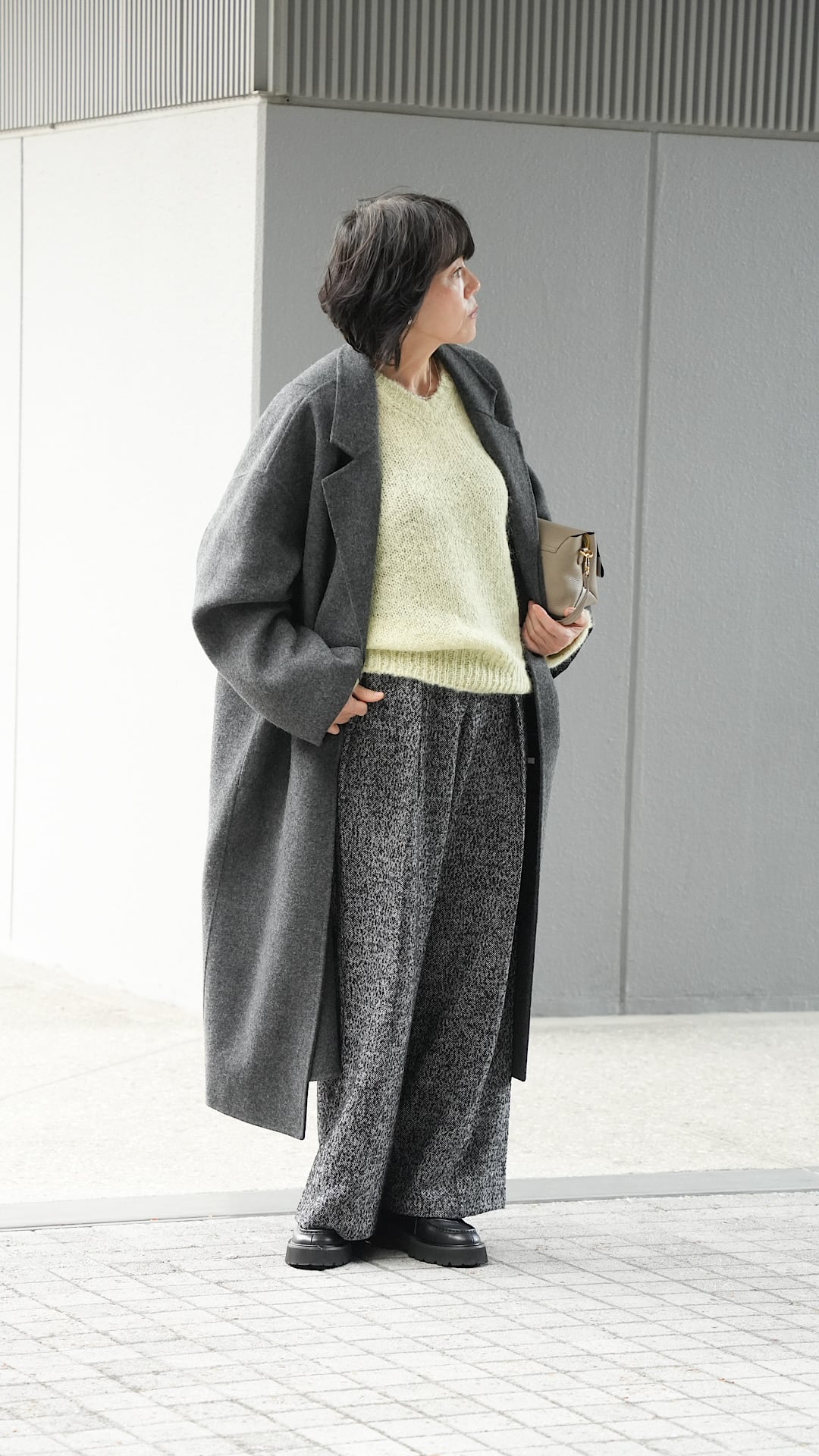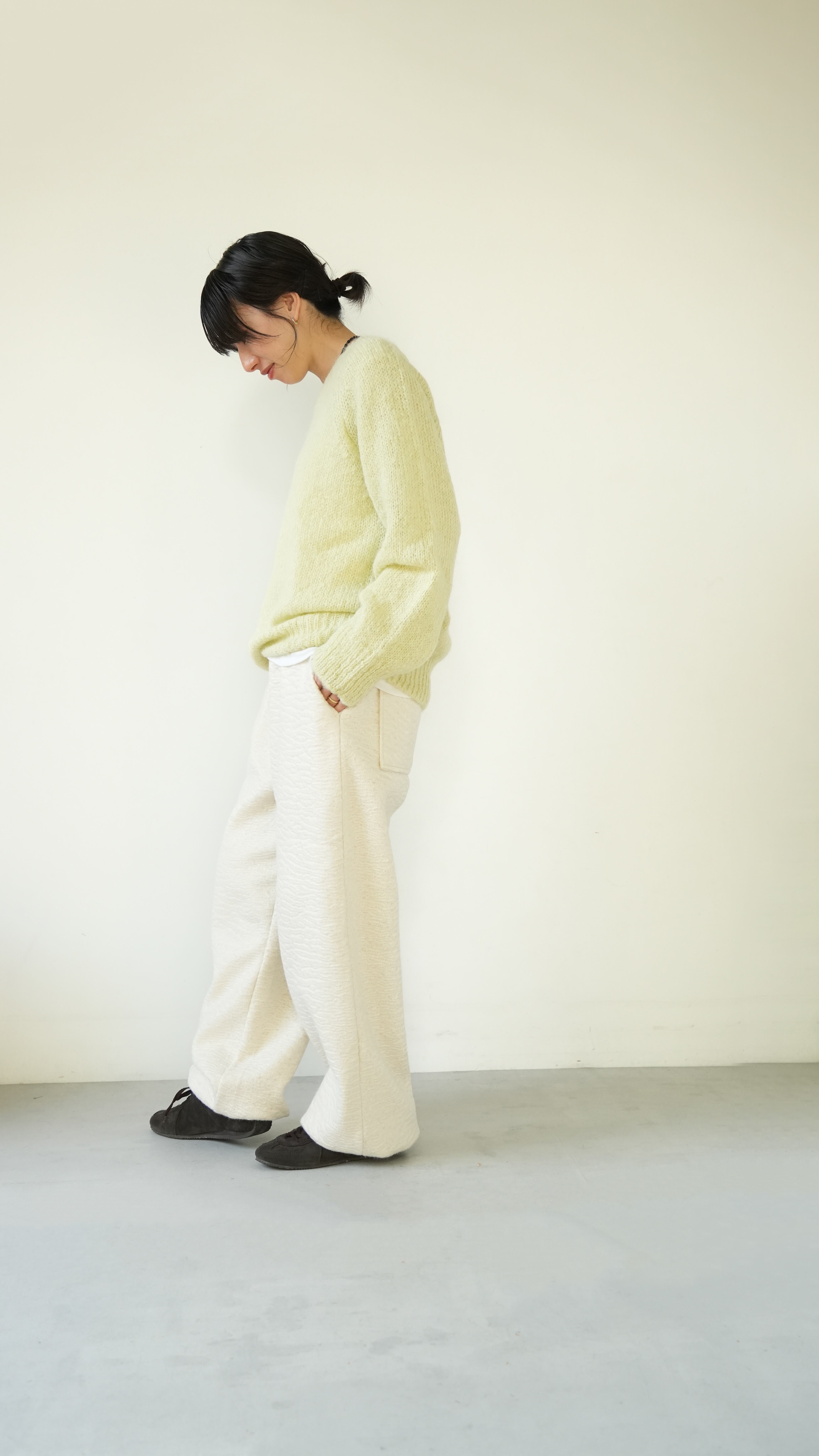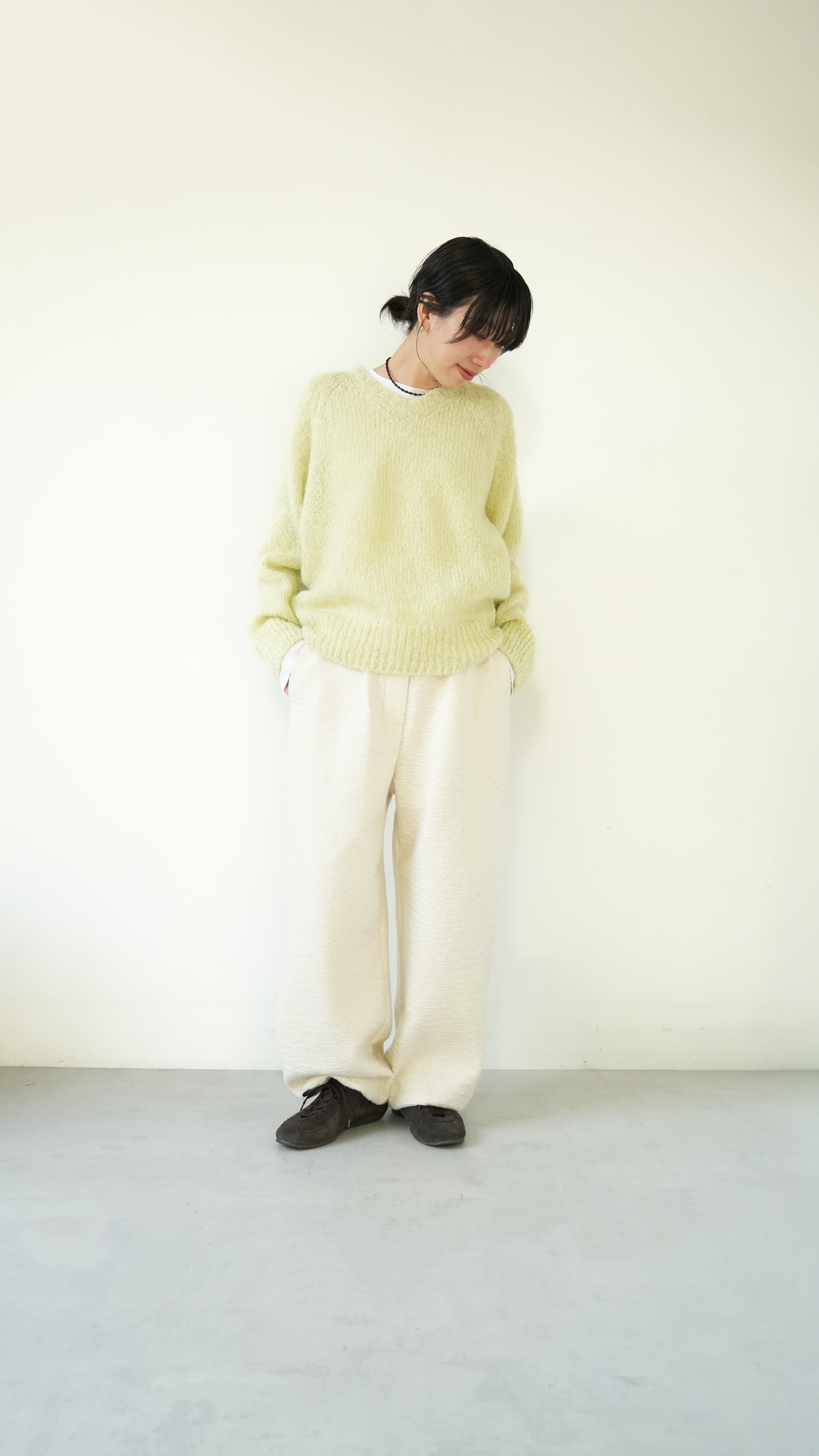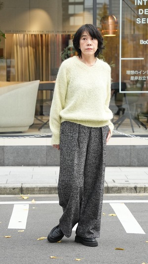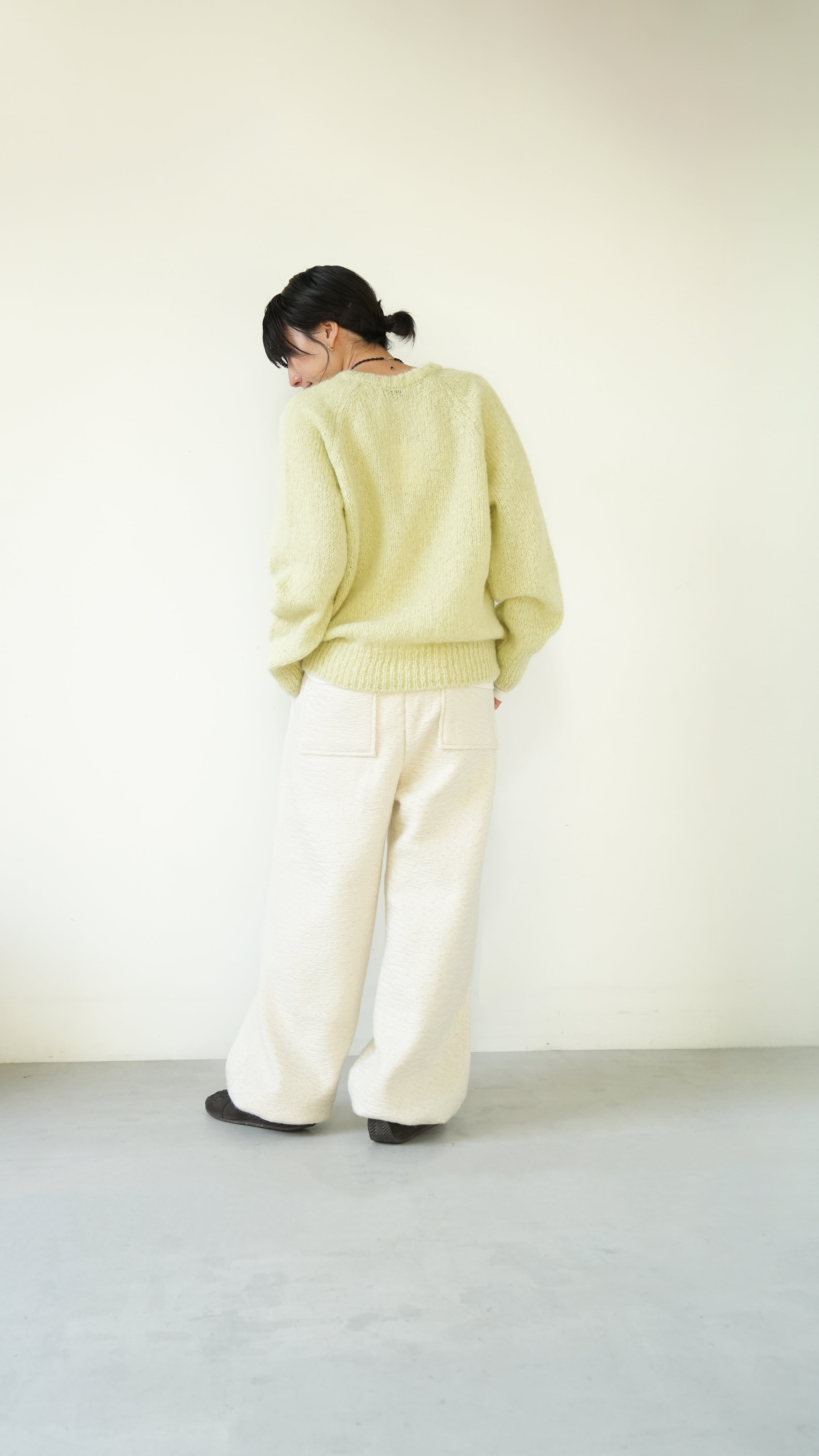 ふんわりと軽く、柔らかなモヘヤとアルパカをブレンドした糸を多本取りにし、ざっくりとしたローゲージで編み上げたVネックセーター