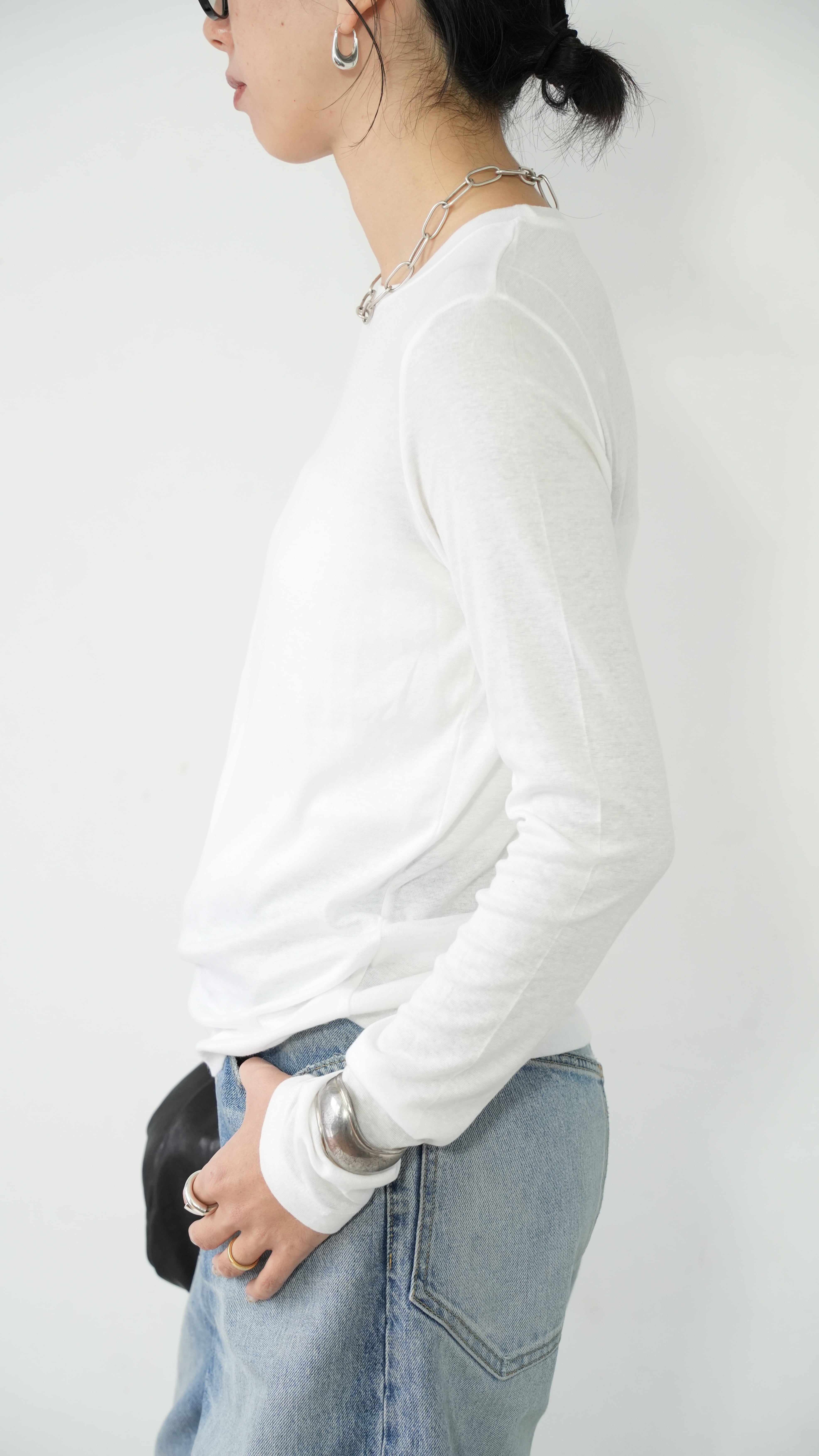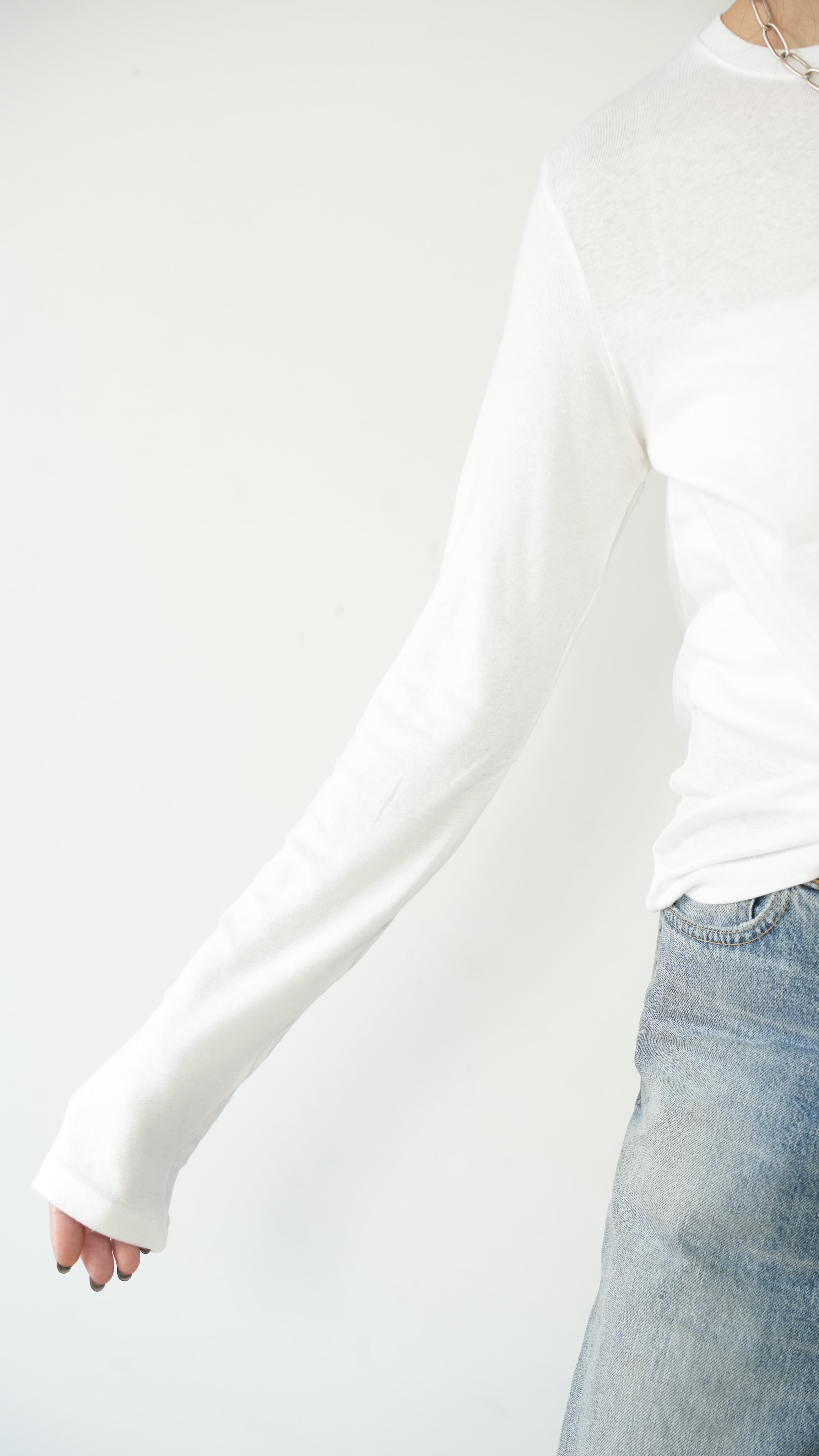 細畝のテレコ素材を使用した、ベーシックで着回し力の高いロングスリーブTシャツ。