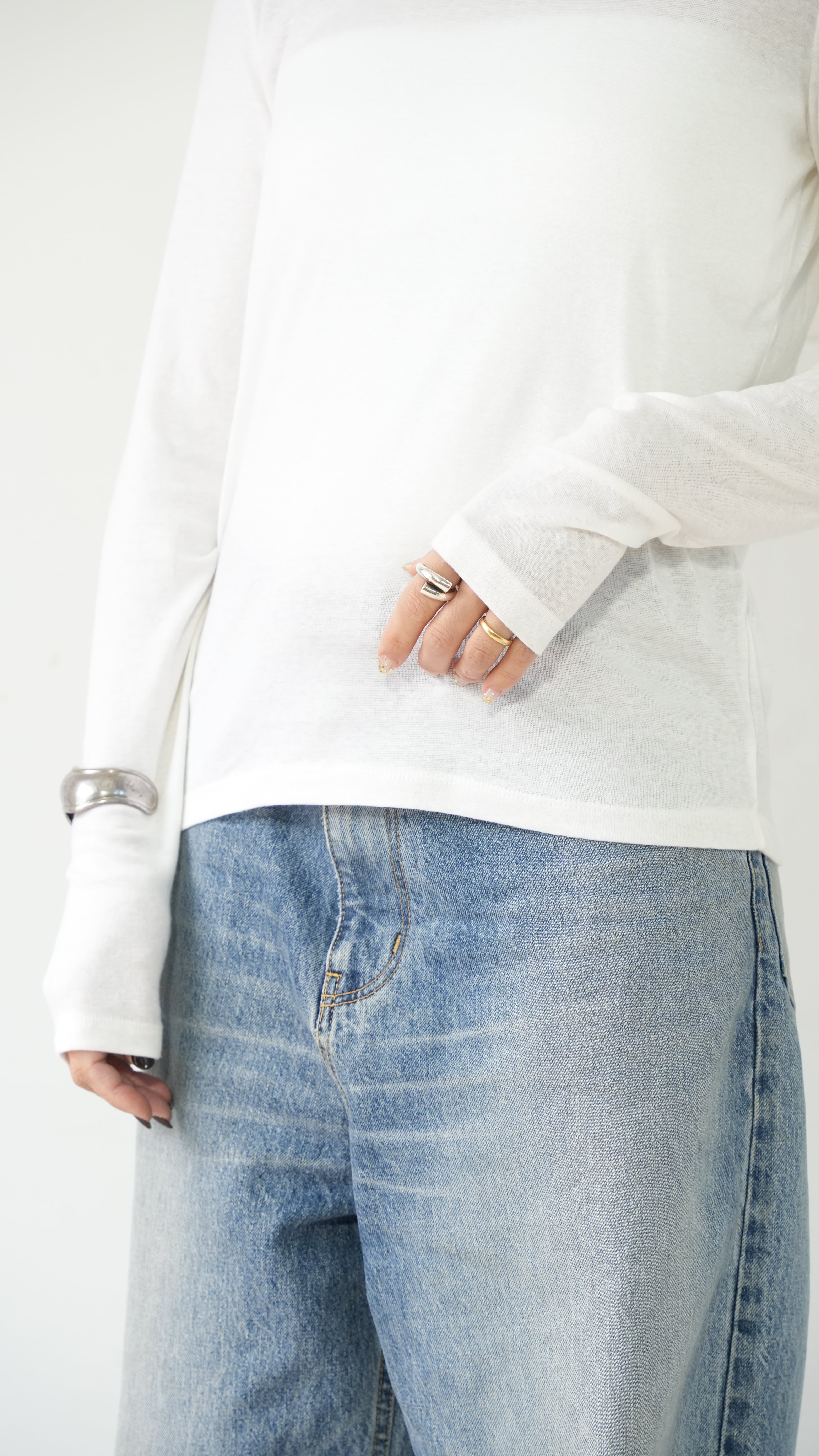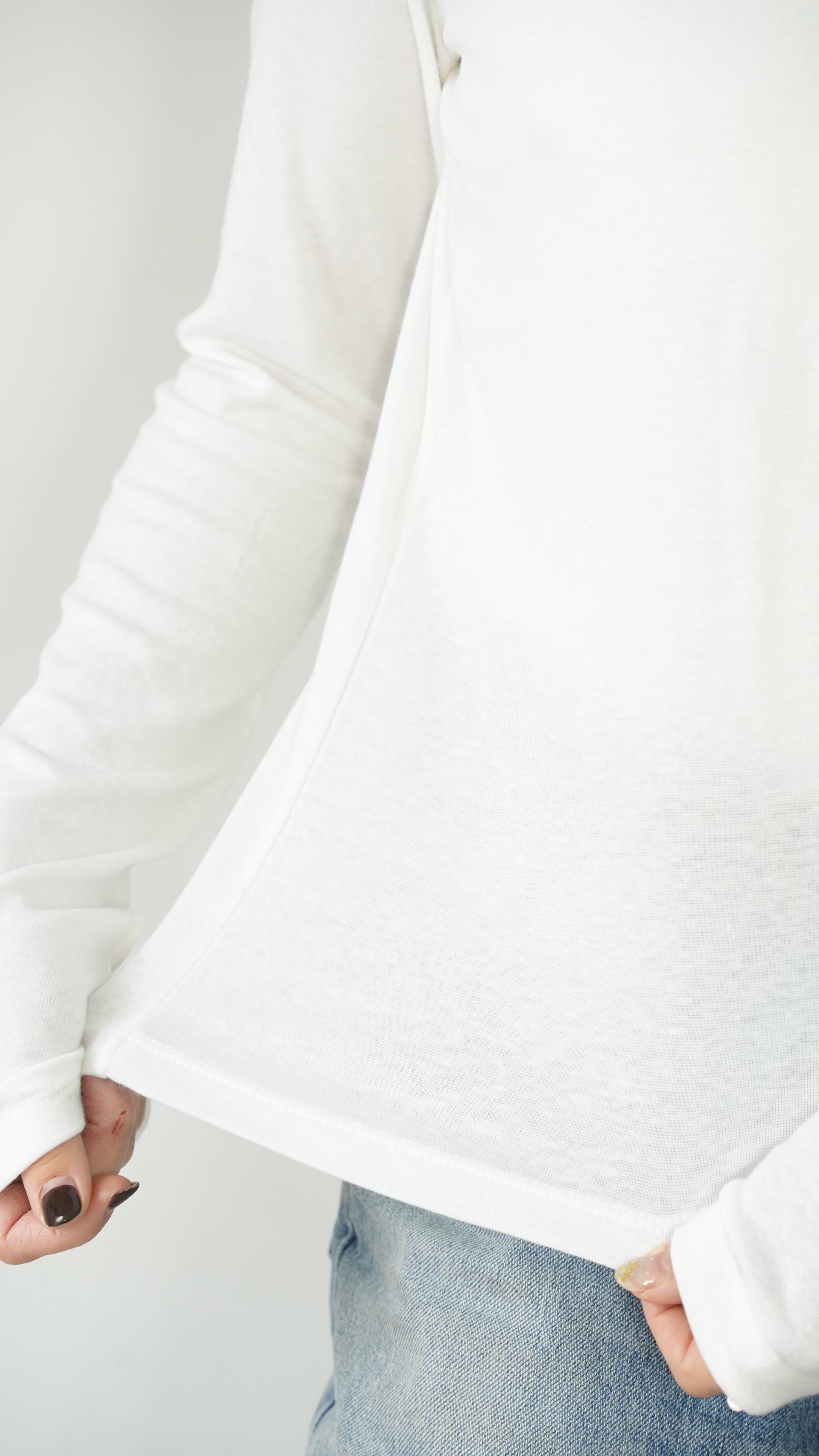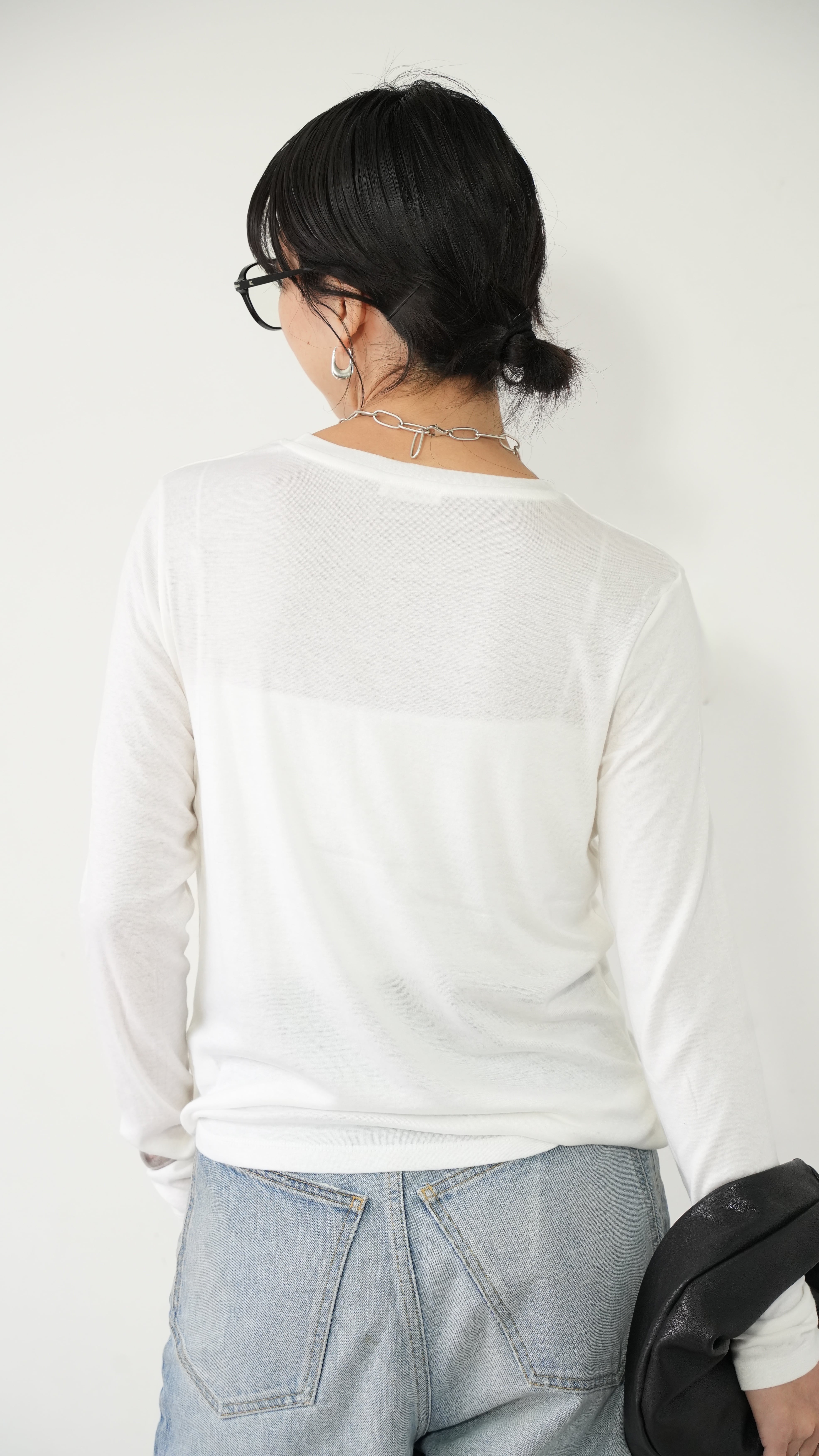 きれい目なのに、こなれた雰囲気も醸し出すカットソーです。インナーを透けさせても◎とても肌触りが良く、肌にほんのり温かく万能な一着です。袖や裾をレイヤードさせても◎