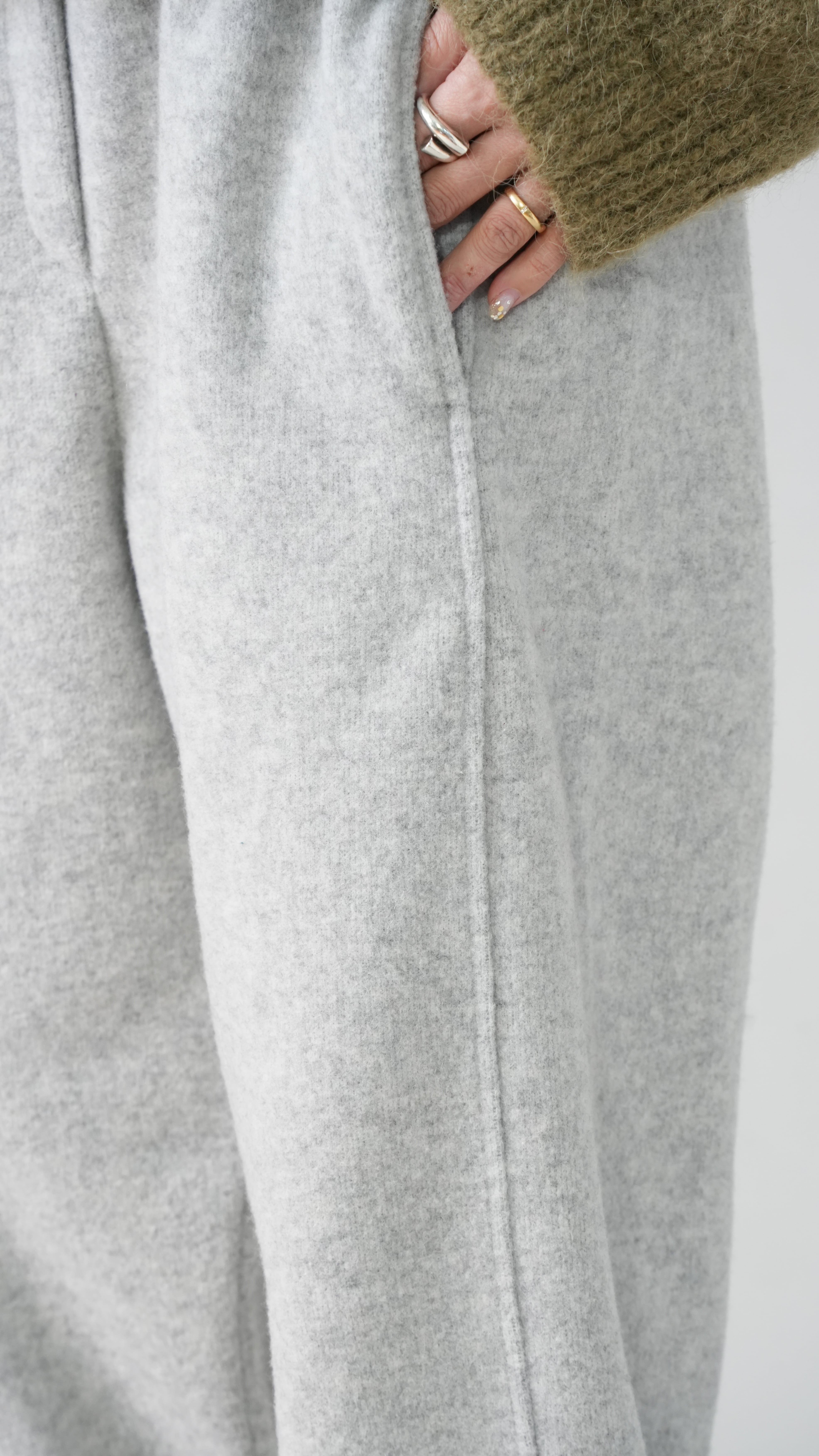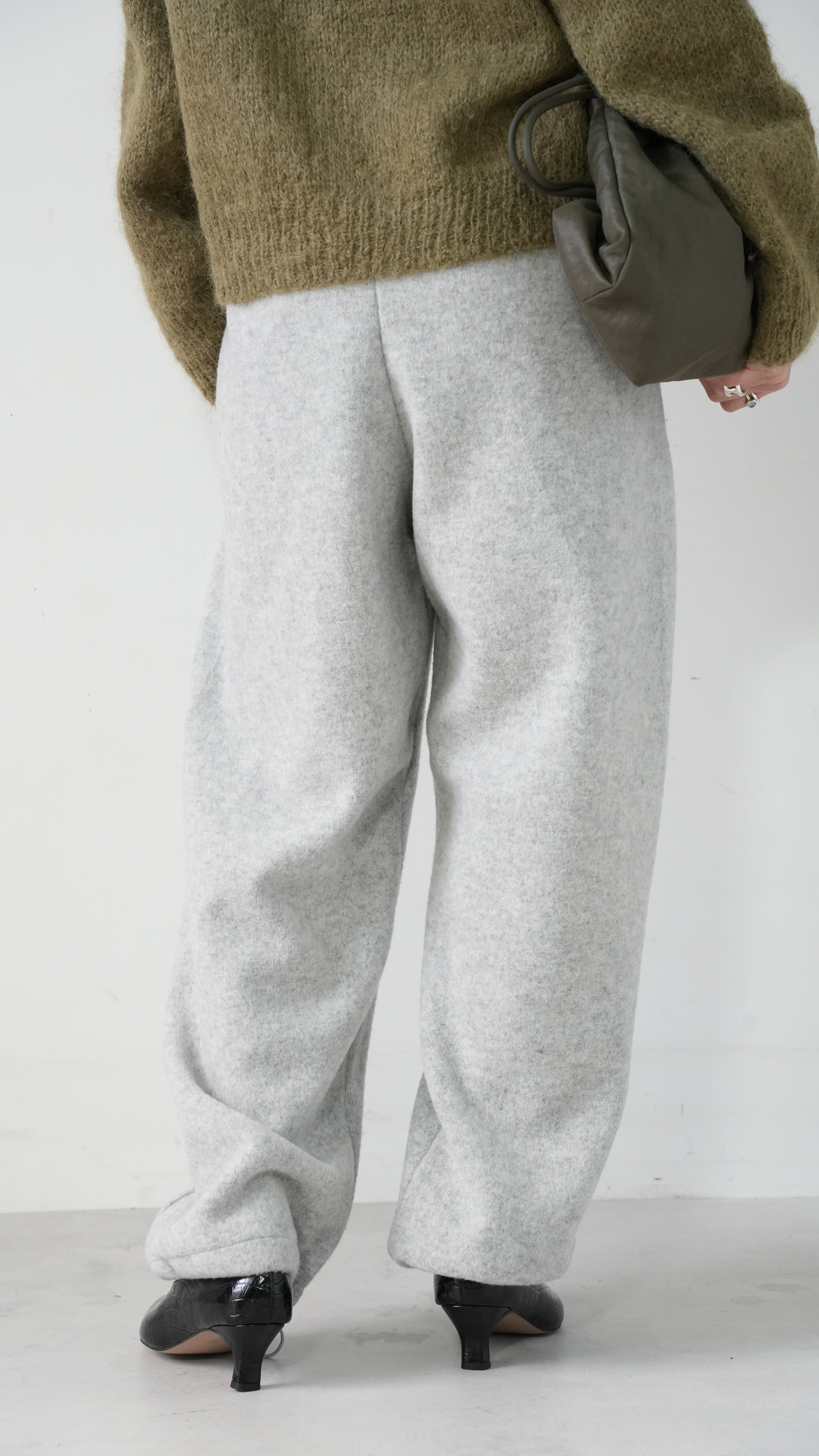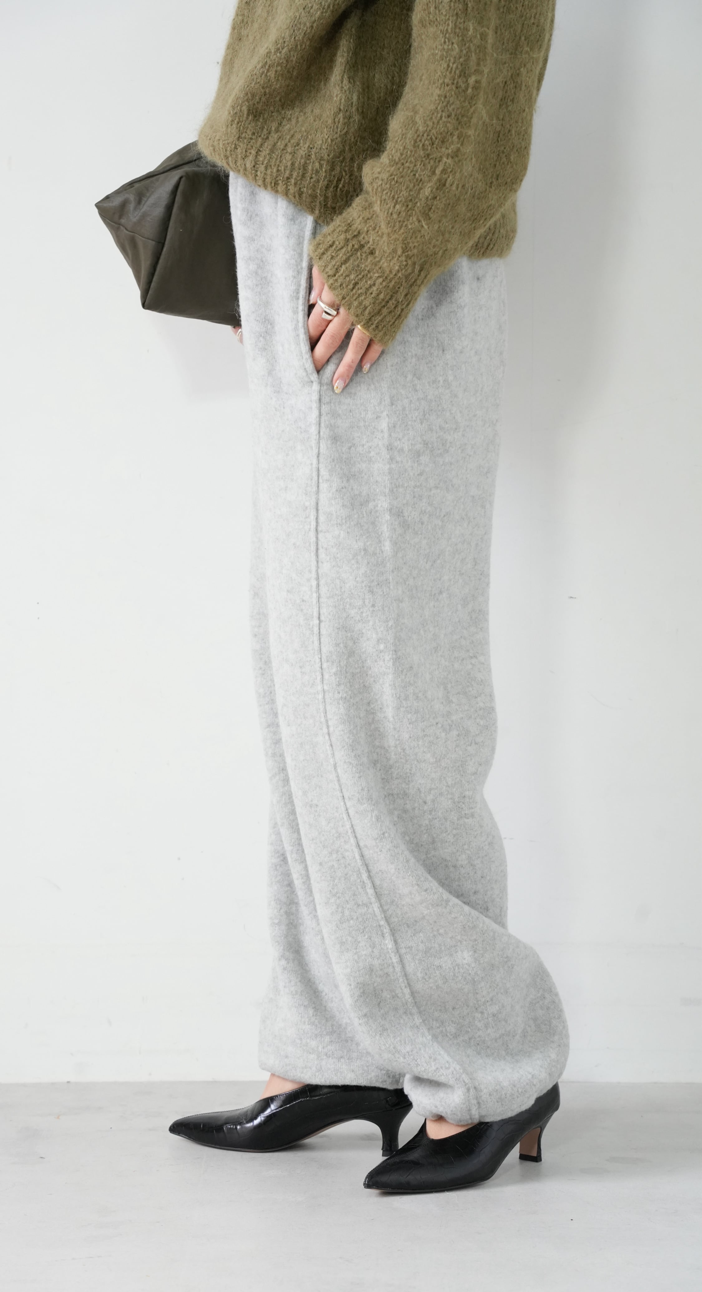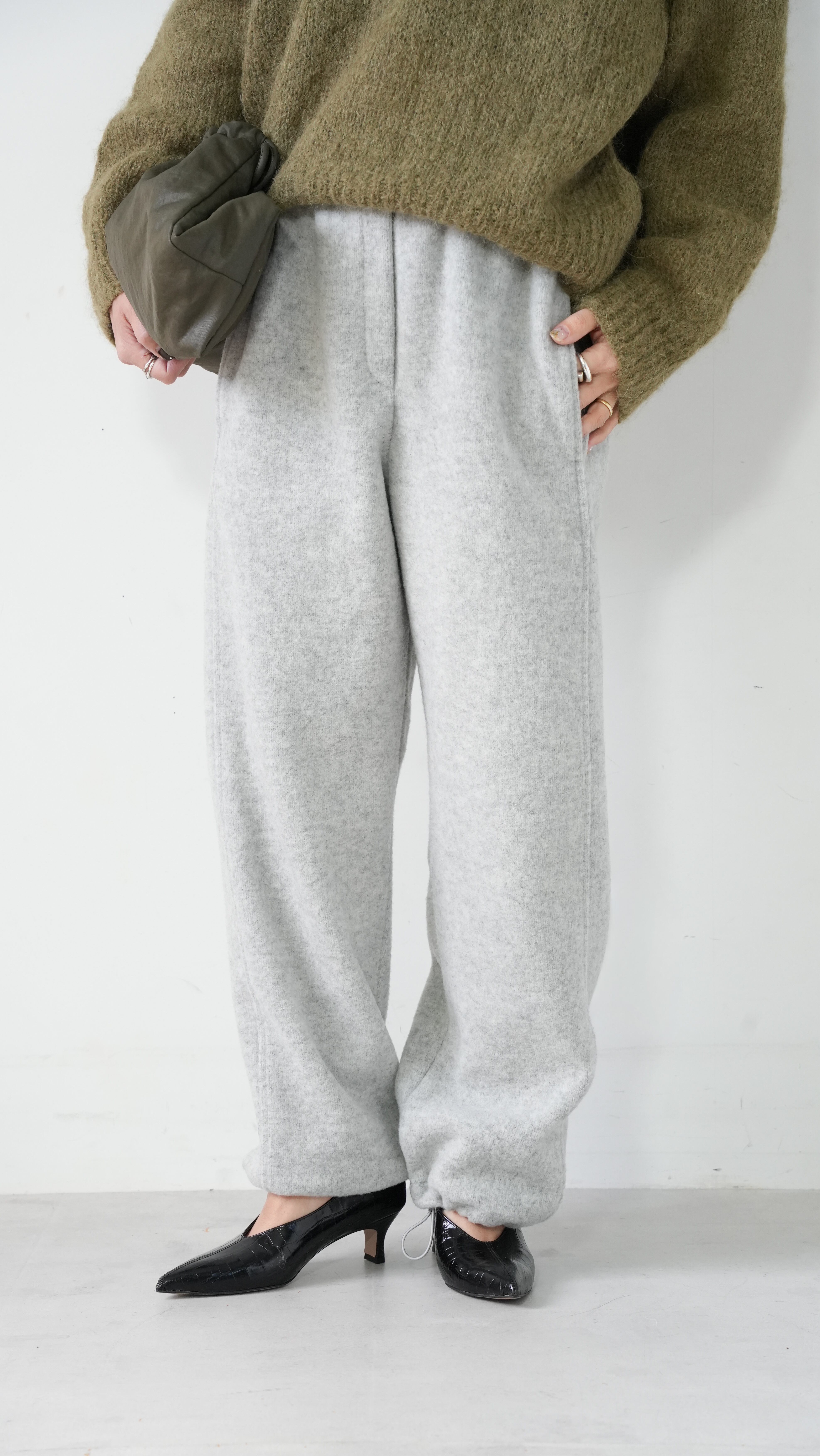軽やかで柔らかなフリース生地を使用したパンツ。ふんわりとした肌触りで、リラックス感のある履き心地が魅力です。毎日のスタイリングが迷わず決まるセットアップで着れる寒い日の、定番パンツ。程よい肉感と柔らかさのある暖かい素材○