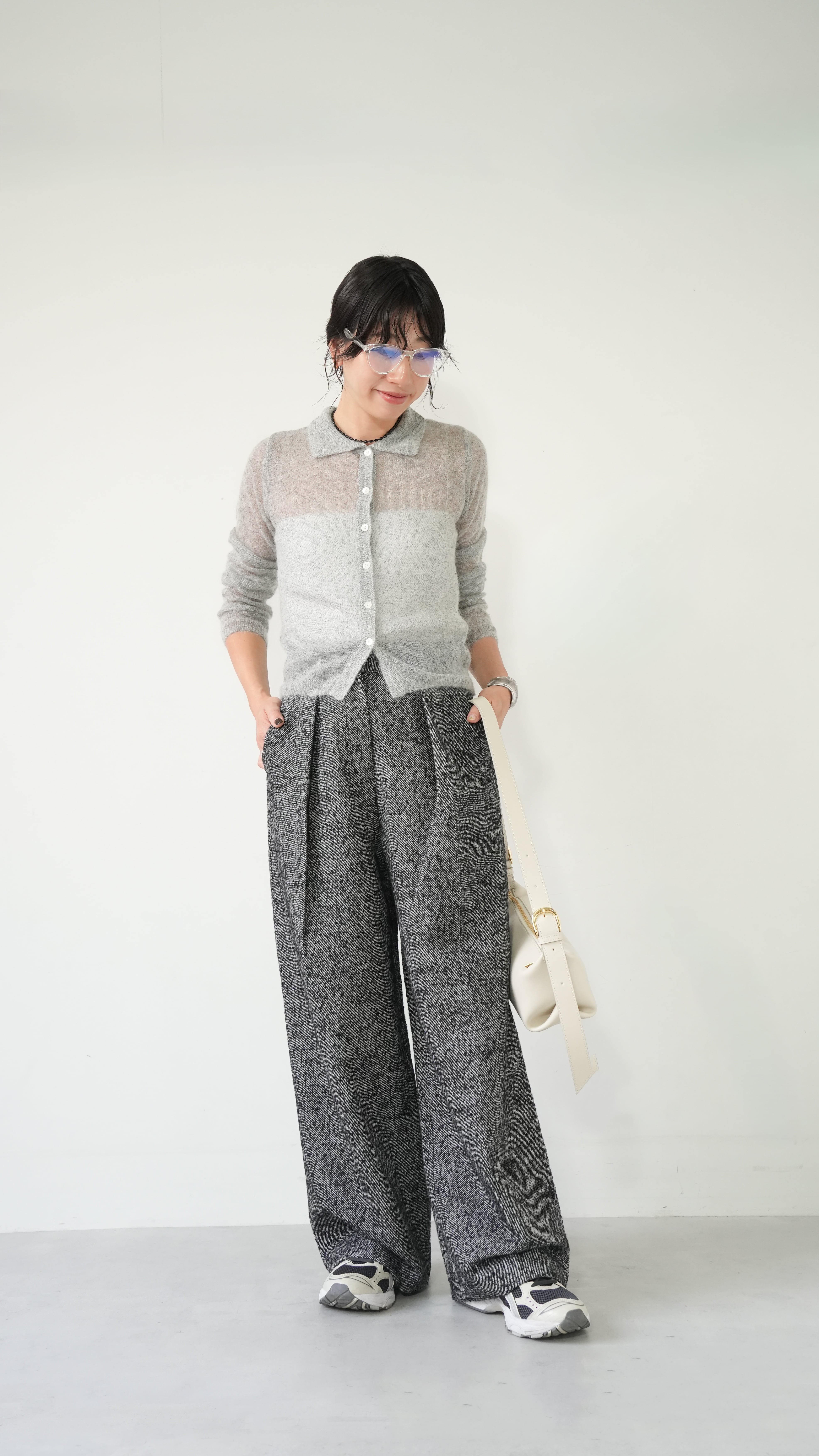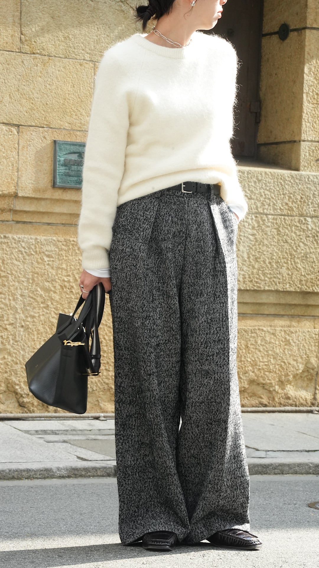 Tweed wide pants