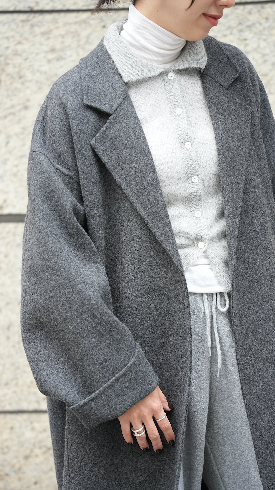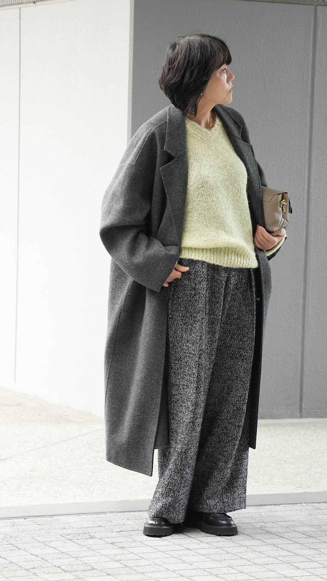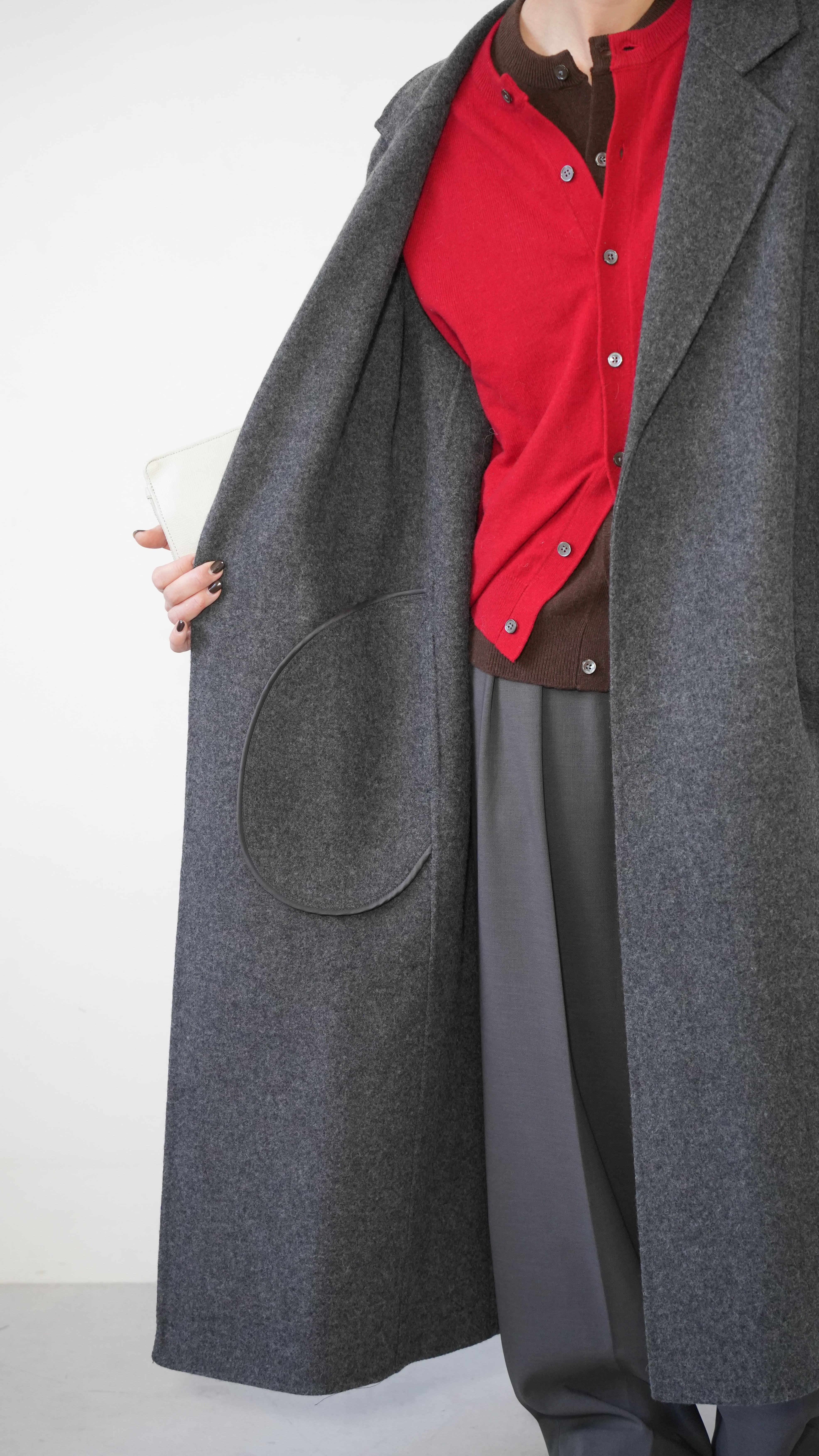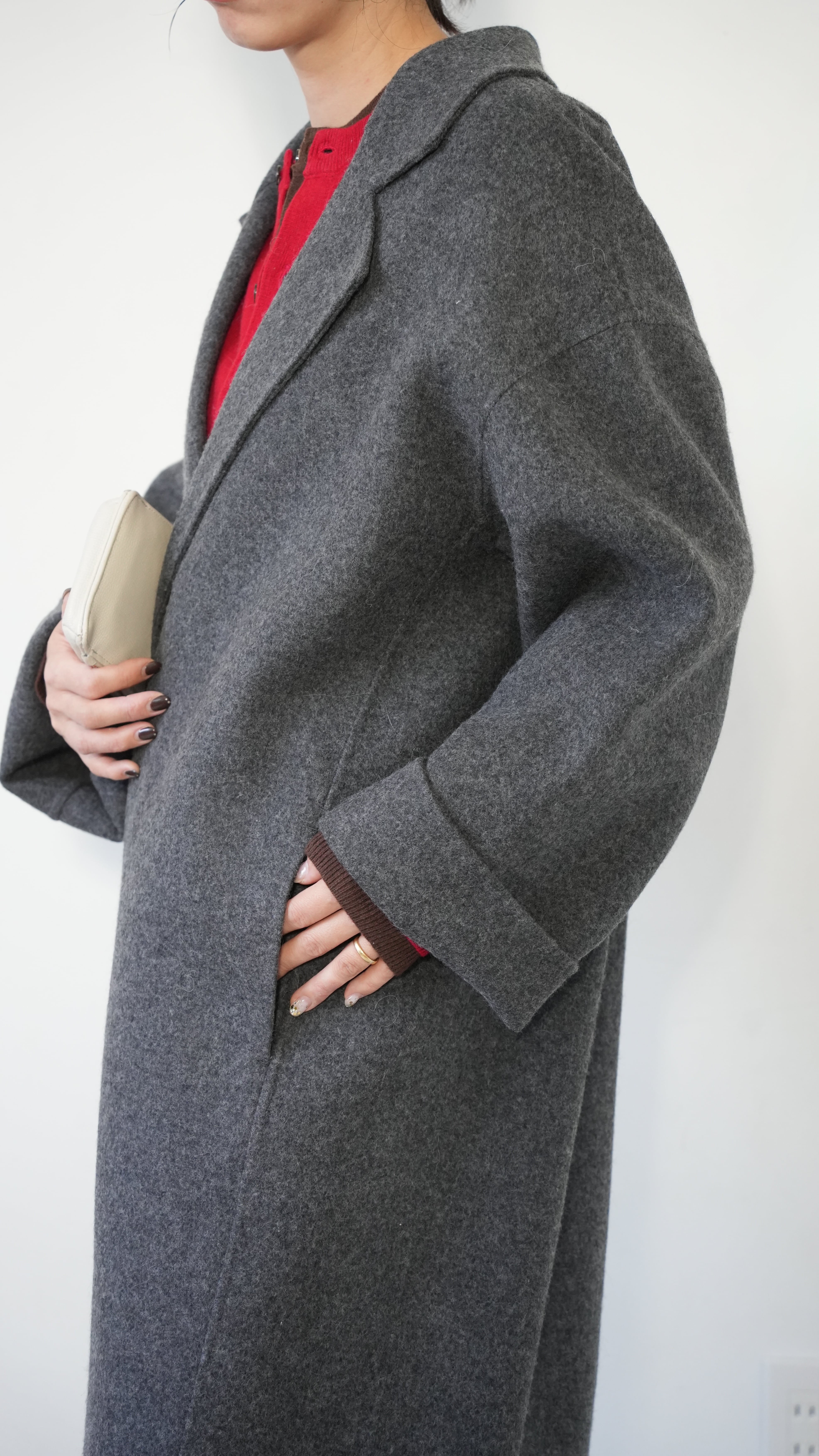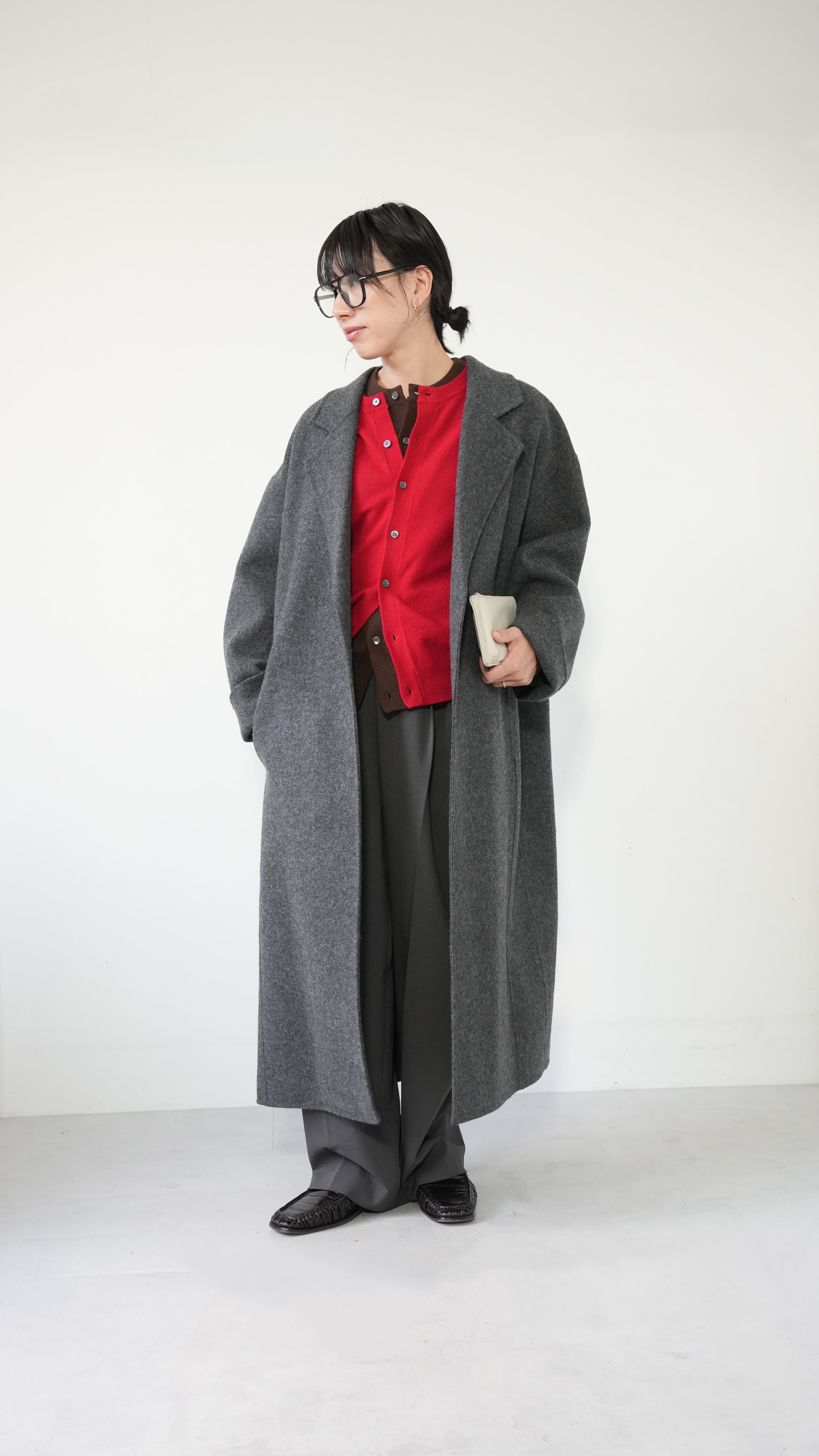 デニムやスラックス、ワンピースに合わせれば、上品さとカジュアル感をバランスよく、寒い日には厚手のセーターやスカーフを合わせて、あたたかみのあるスタイルに。シンプルでありながら存在感のある一枚です。