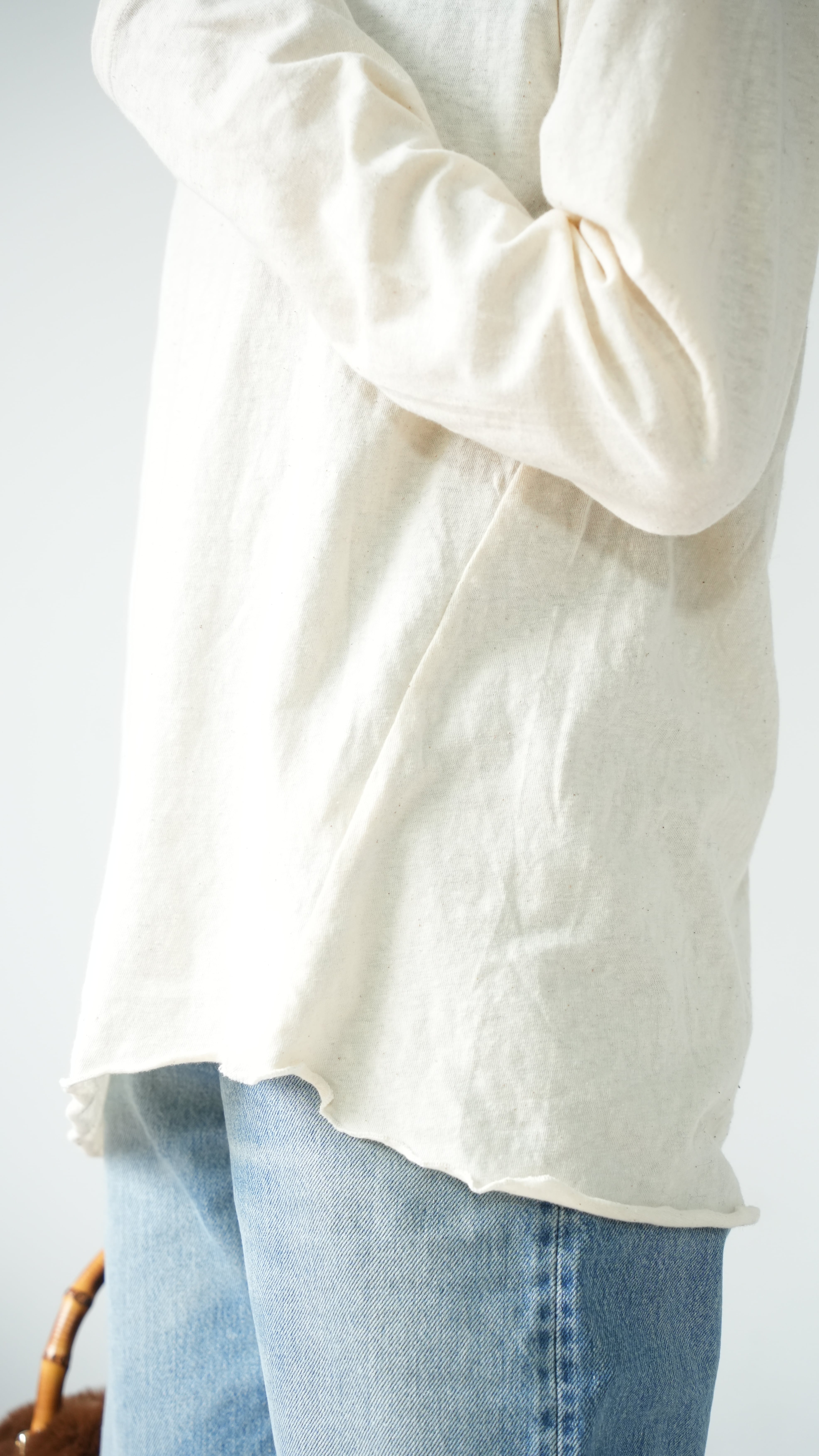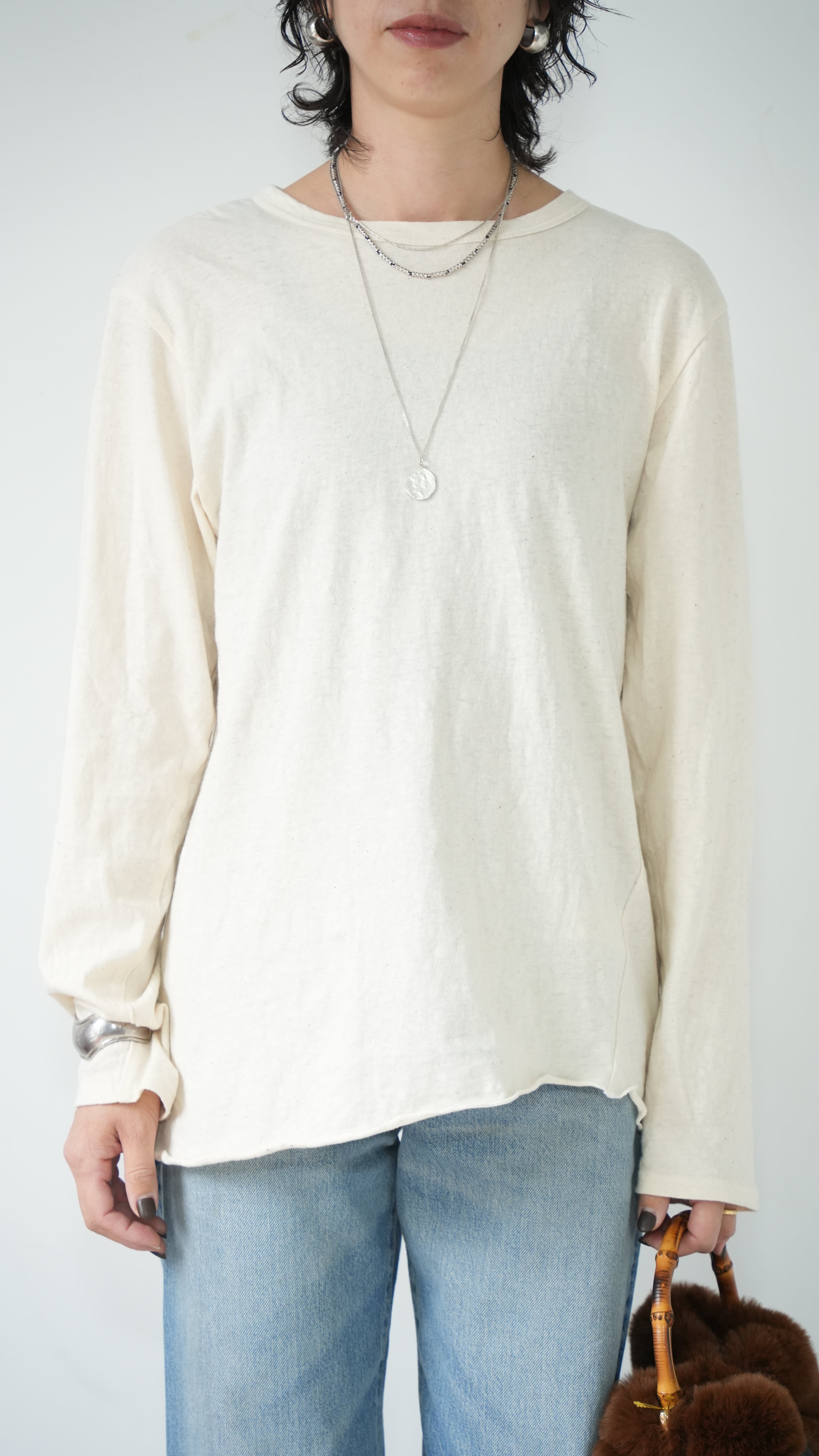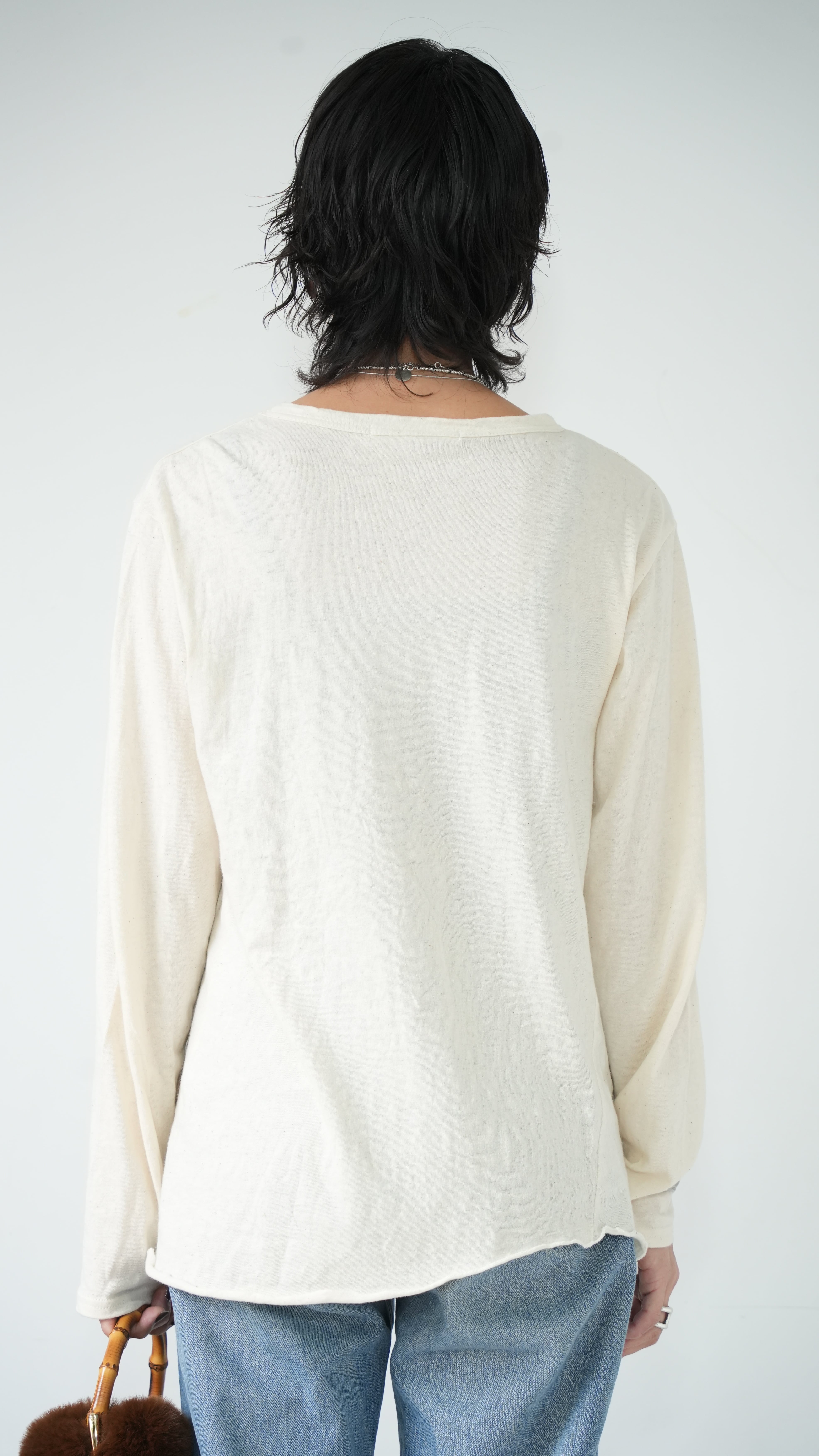 素材のよさと、丁寧な仕立てにこだわり、生地を探すのに約1年を費やし、理想を追求したレイヤードTシャツです。ニットやトレーナーに必ずある定番のカラーに合うように考え、日本製の柔らかい生地とのバランスを見ながら、手を加えなくても見えたいように見えてくれるのがレイヤードTEEの最大の魅力。洗濯機で洗え、ガシガシ着れて、ニットやトレーナー、カーディガンの中、ベストの中にもおすすめです。