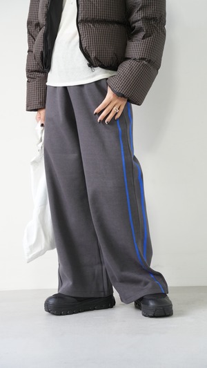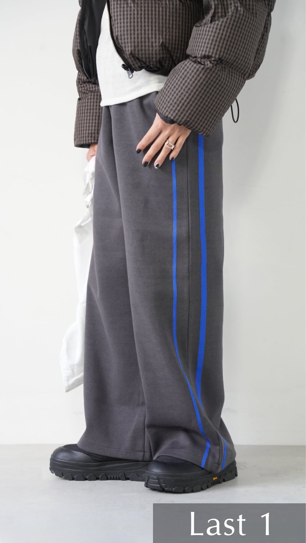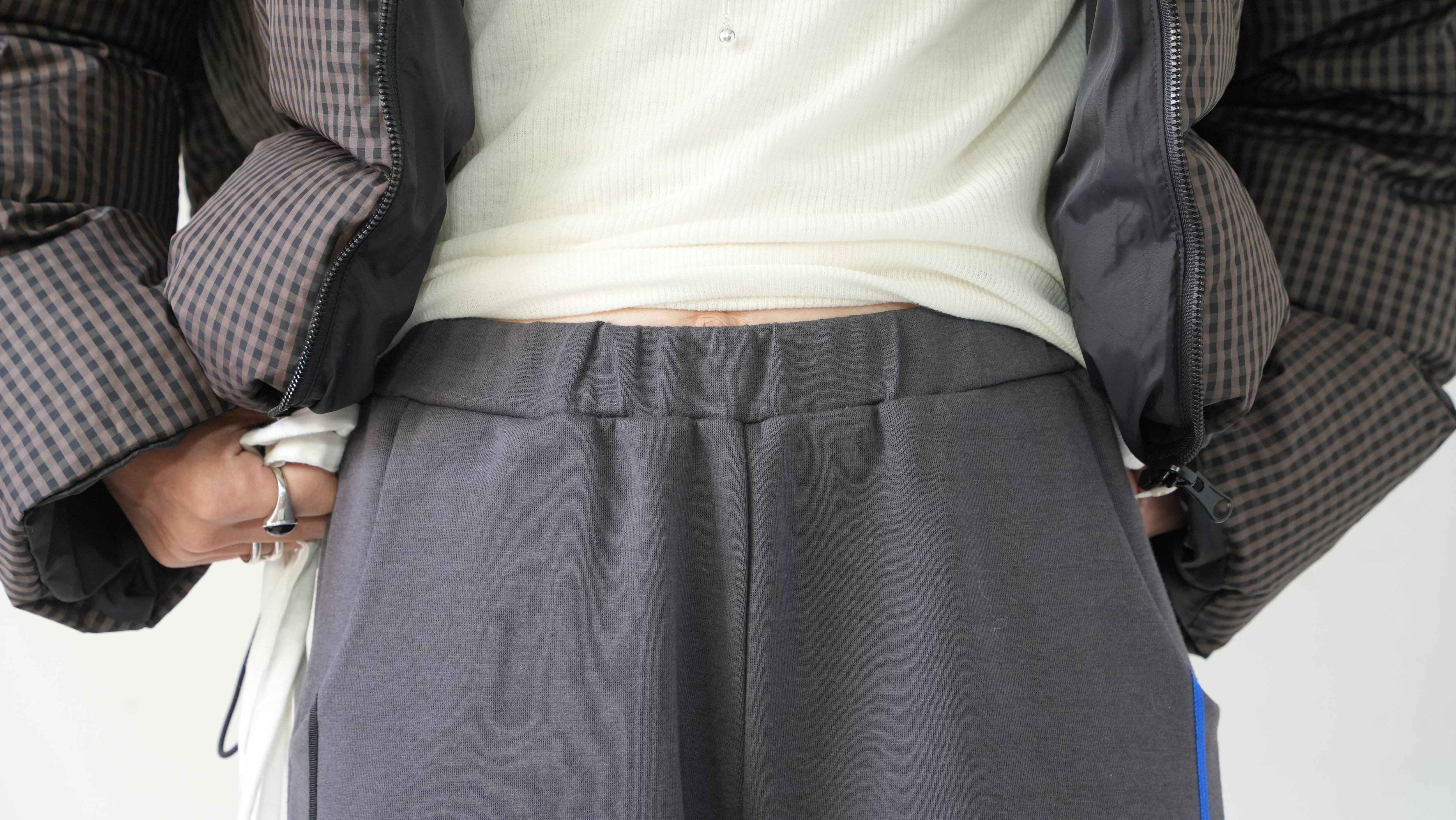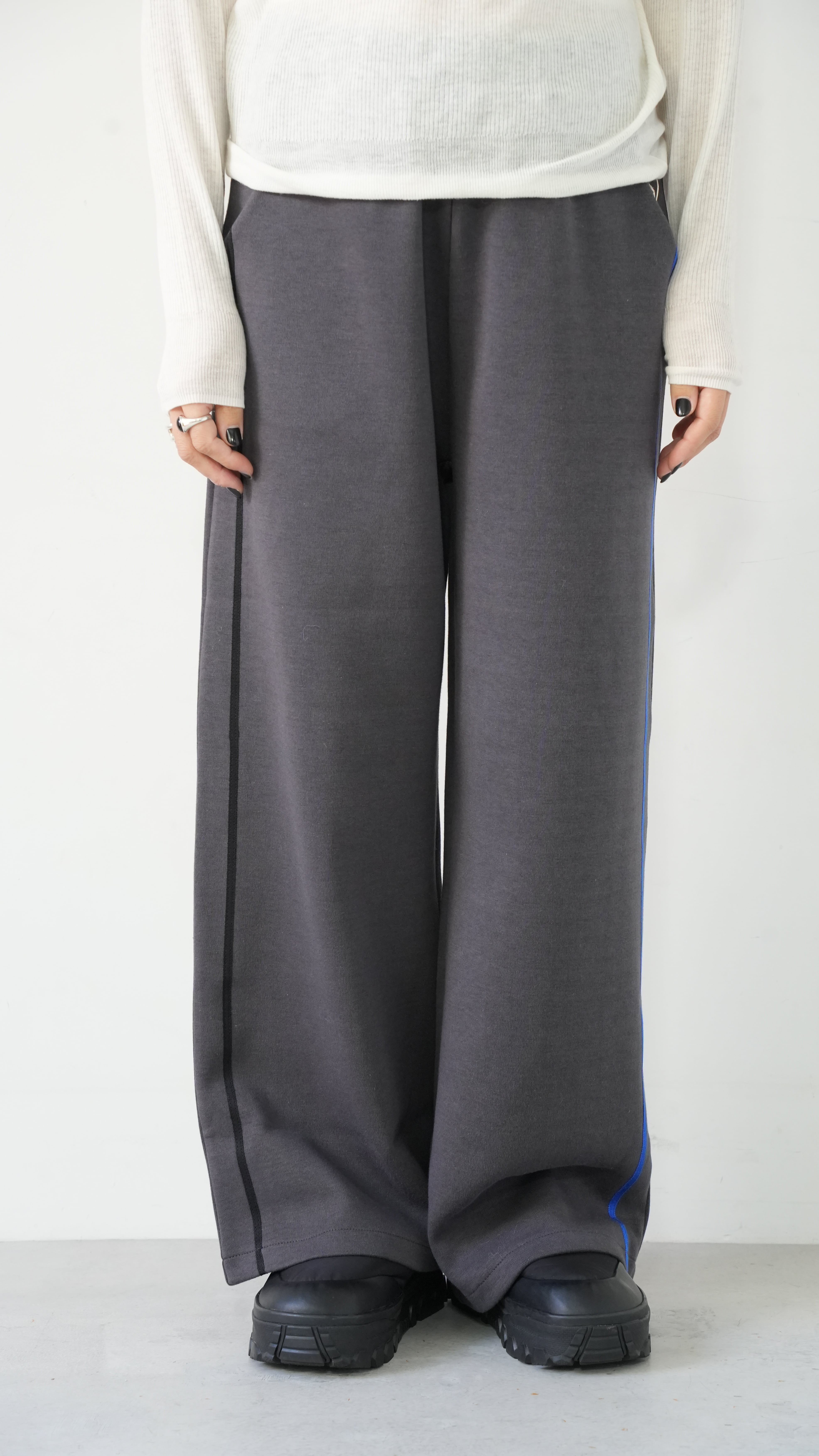毛玉になりにくいドライな糸を使用し、大人カジュアルに穿きこなせるラインパンツ。