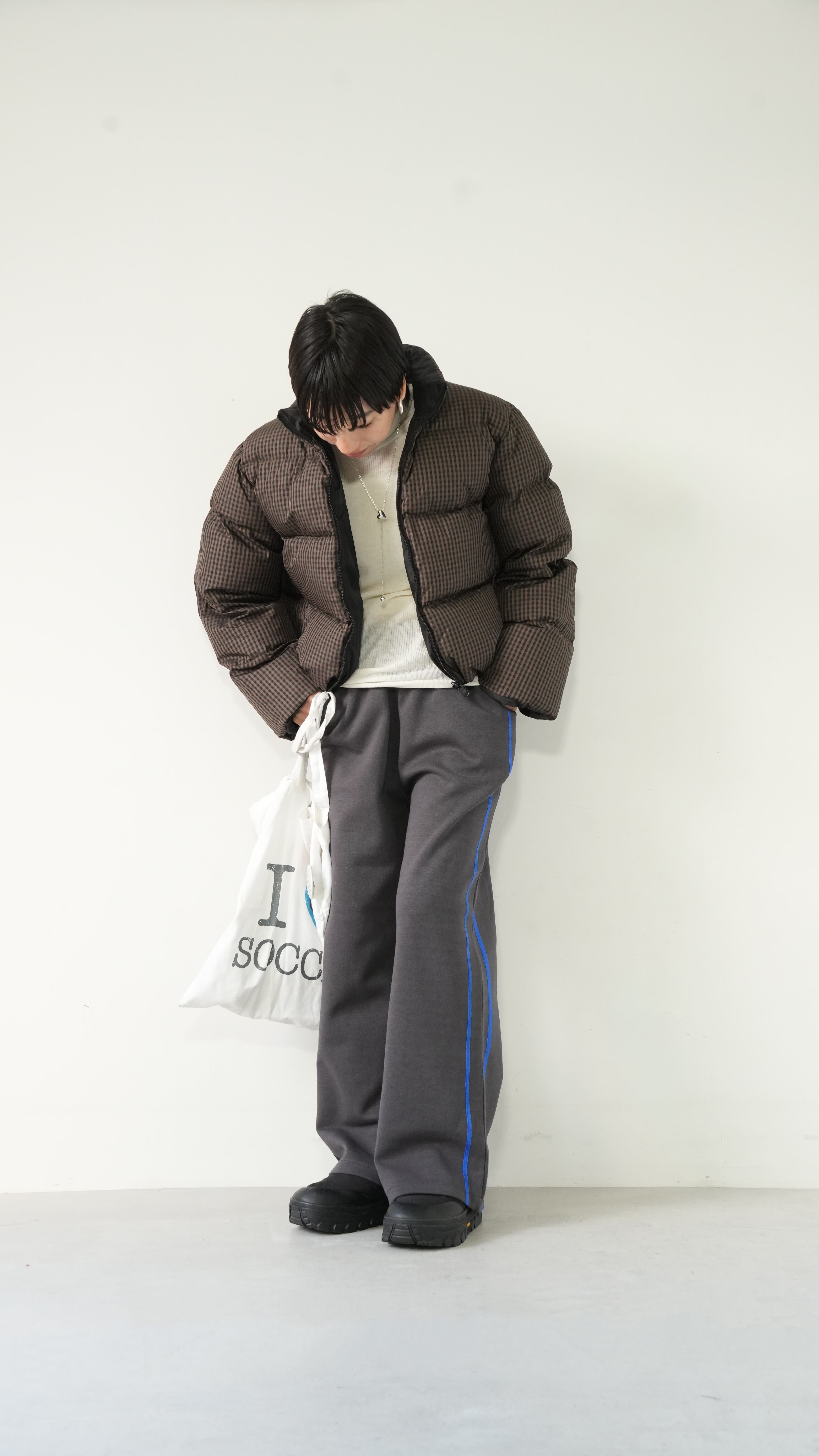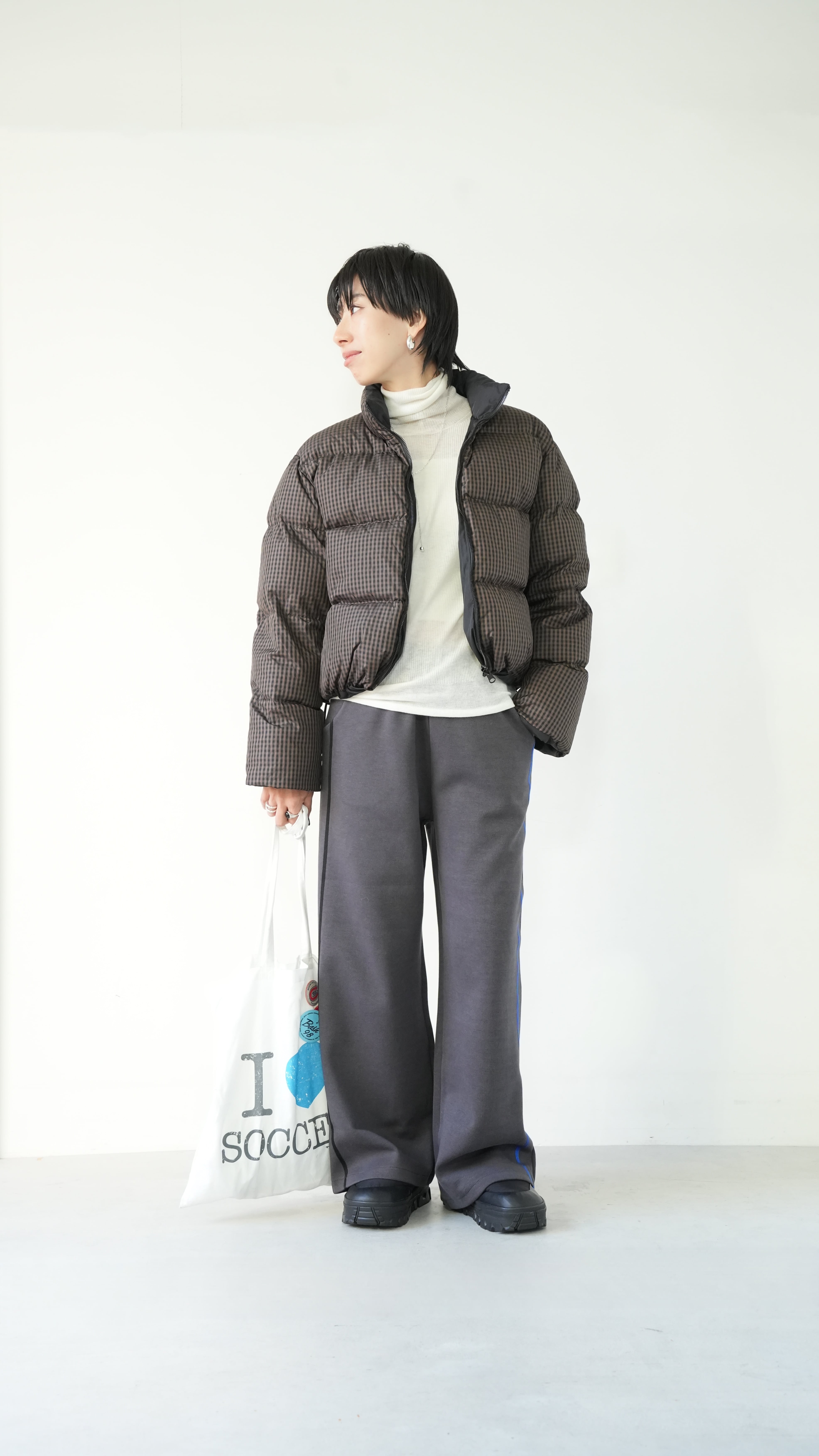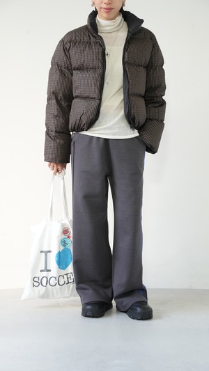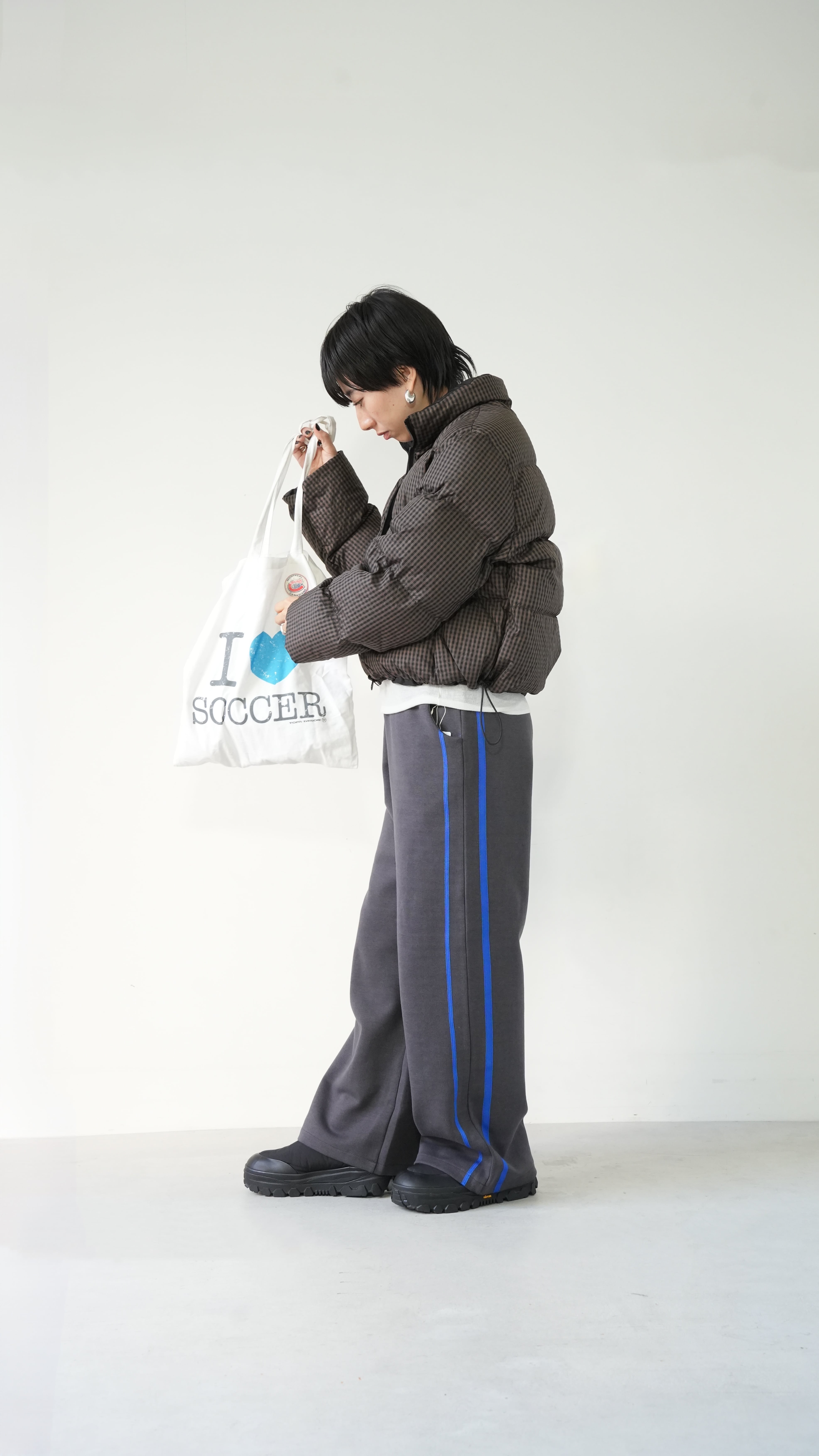 毛玉になりにくいドライな糸を使用し、大人カジュアルに穿きこなせるラインパンツ。