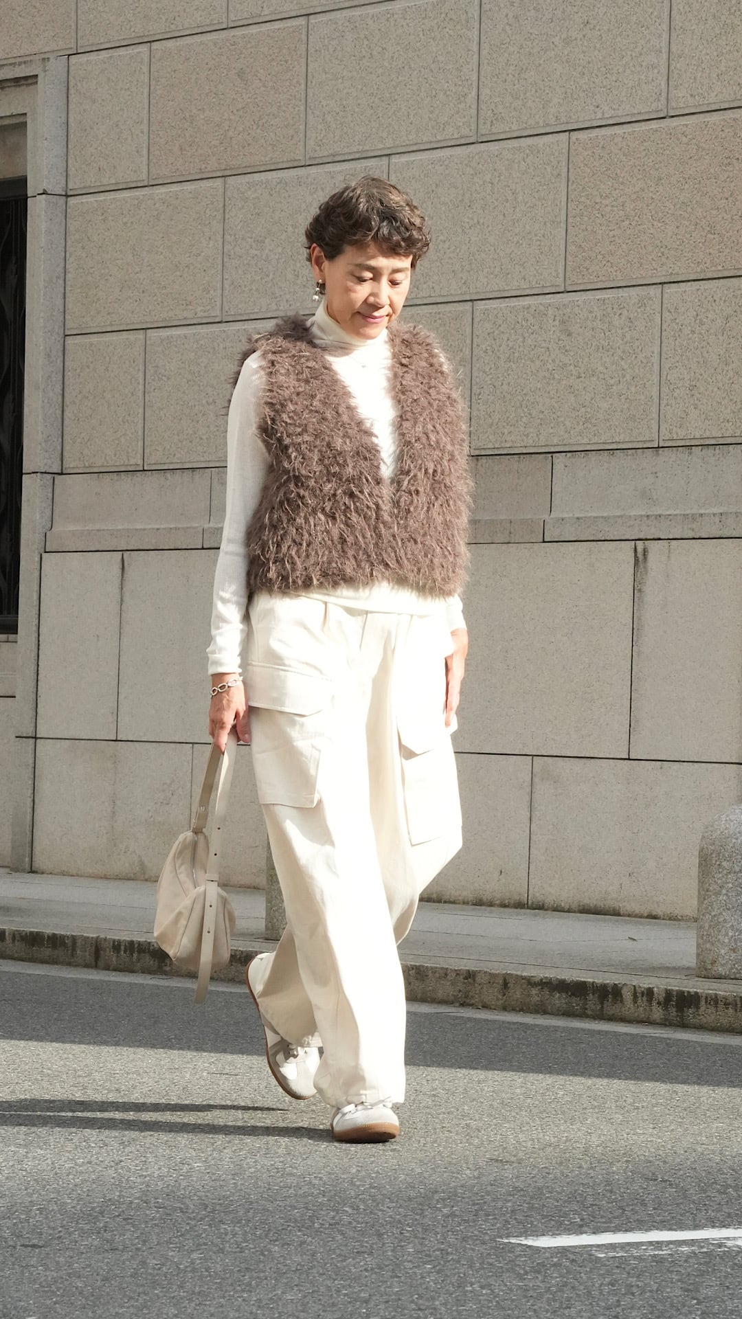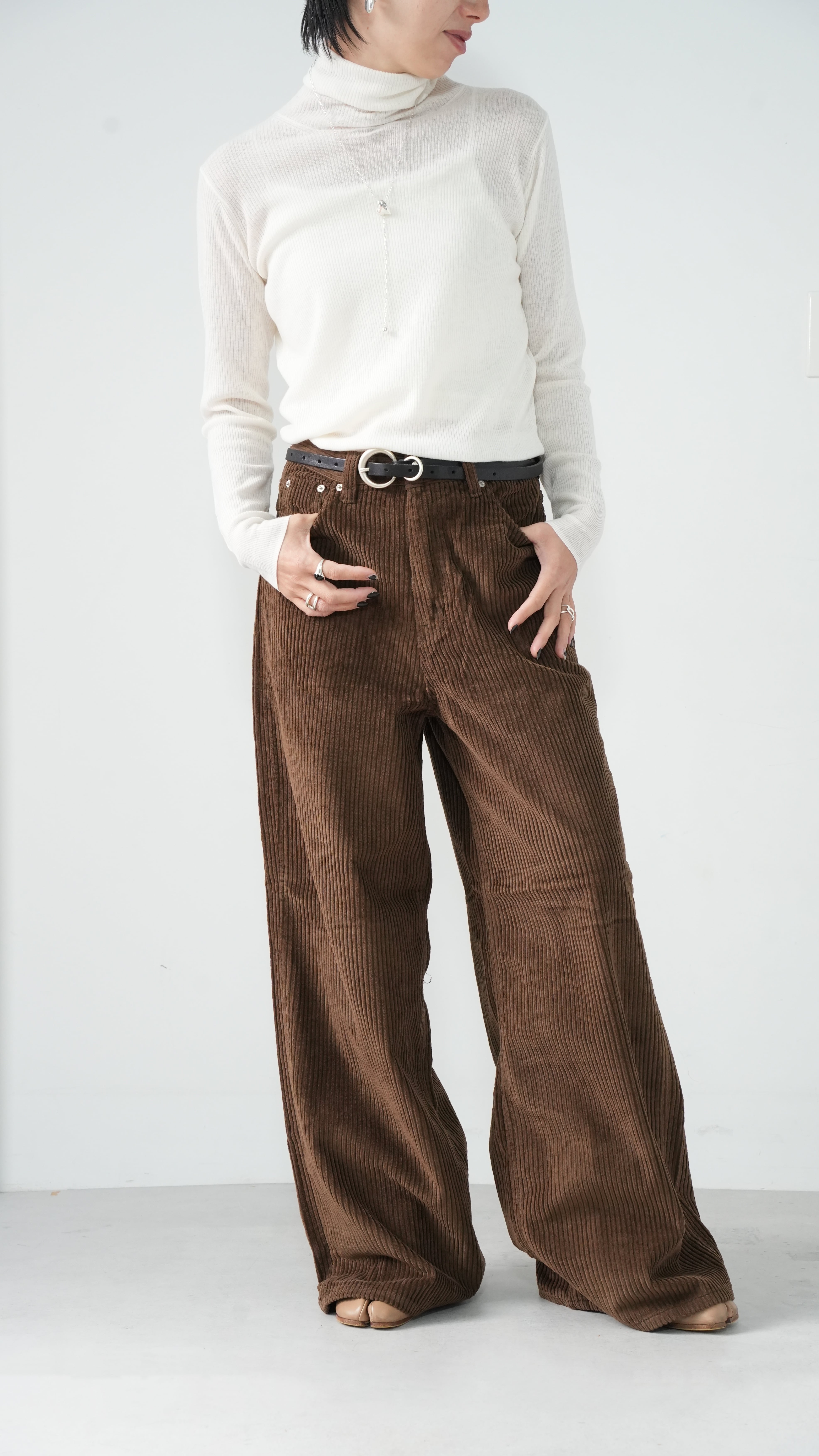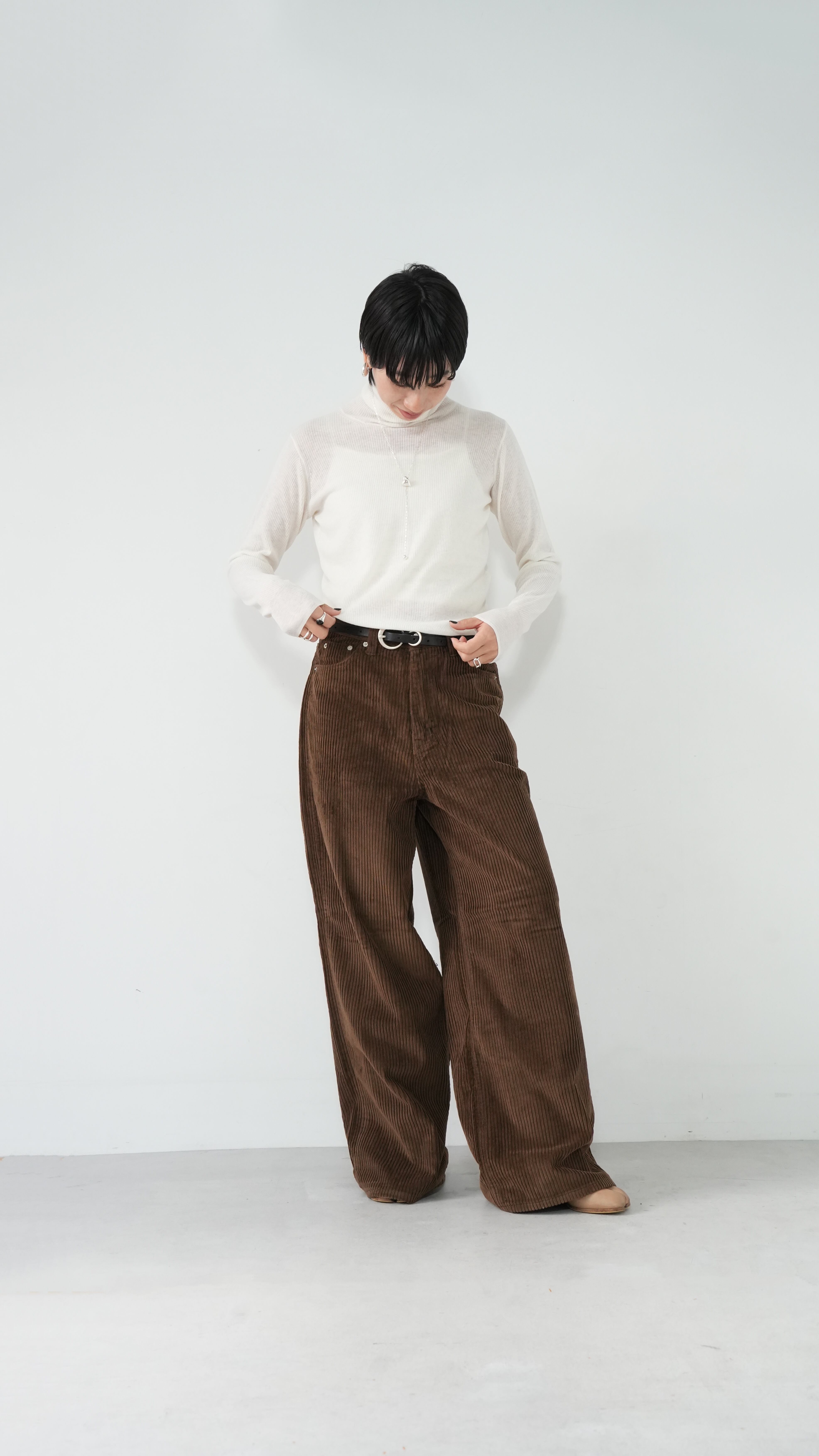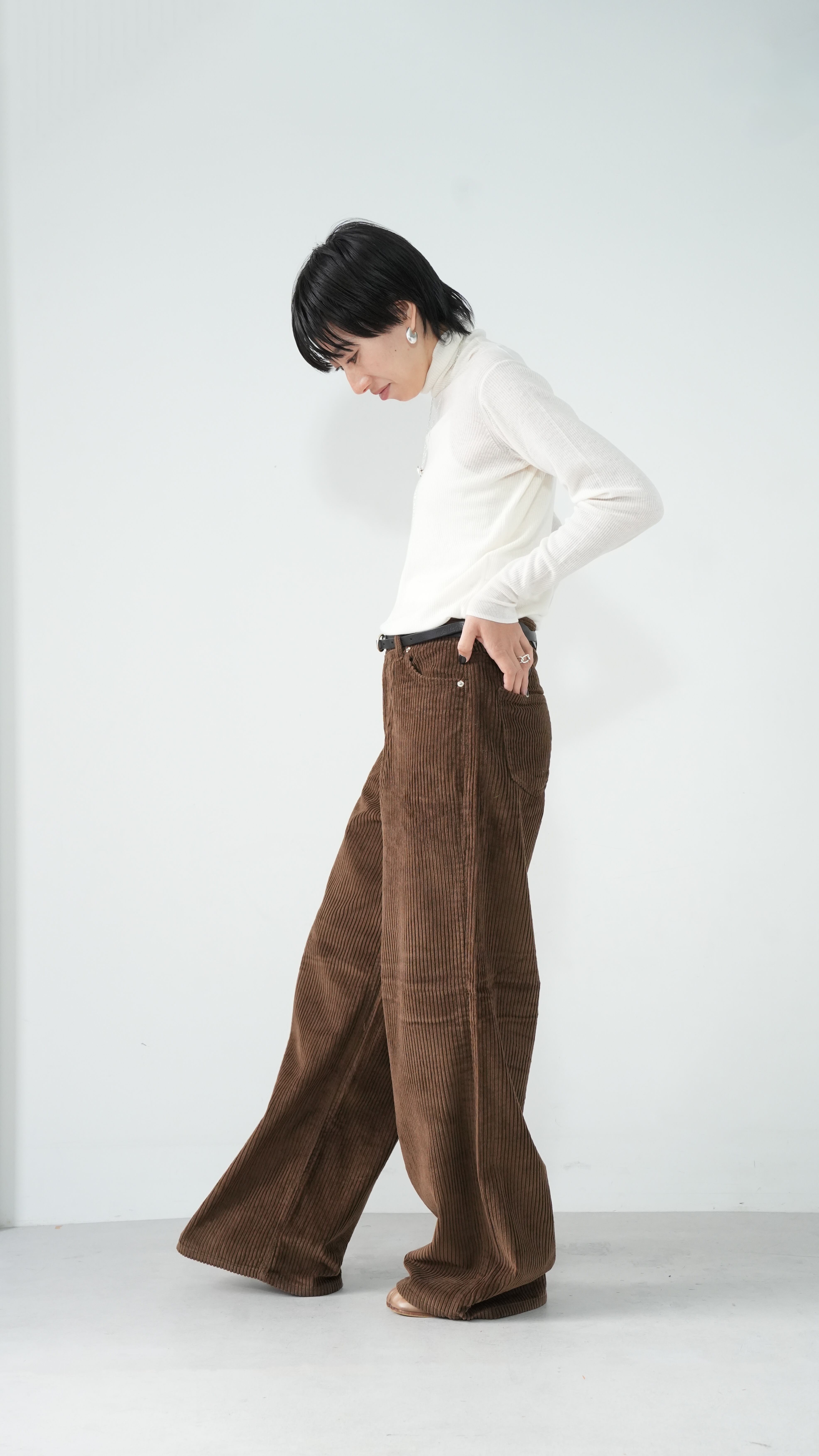 すっきりとしたシルエットなので、ワイドパンツなどゆったりめのボトムスと合わせていただくのがおすすめです。