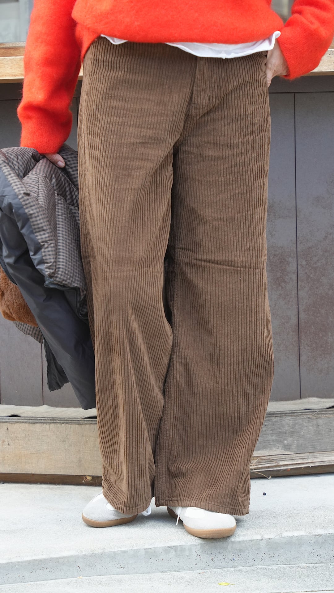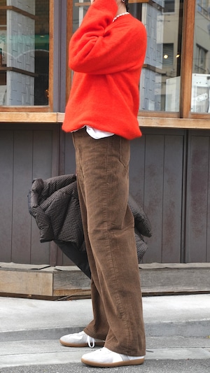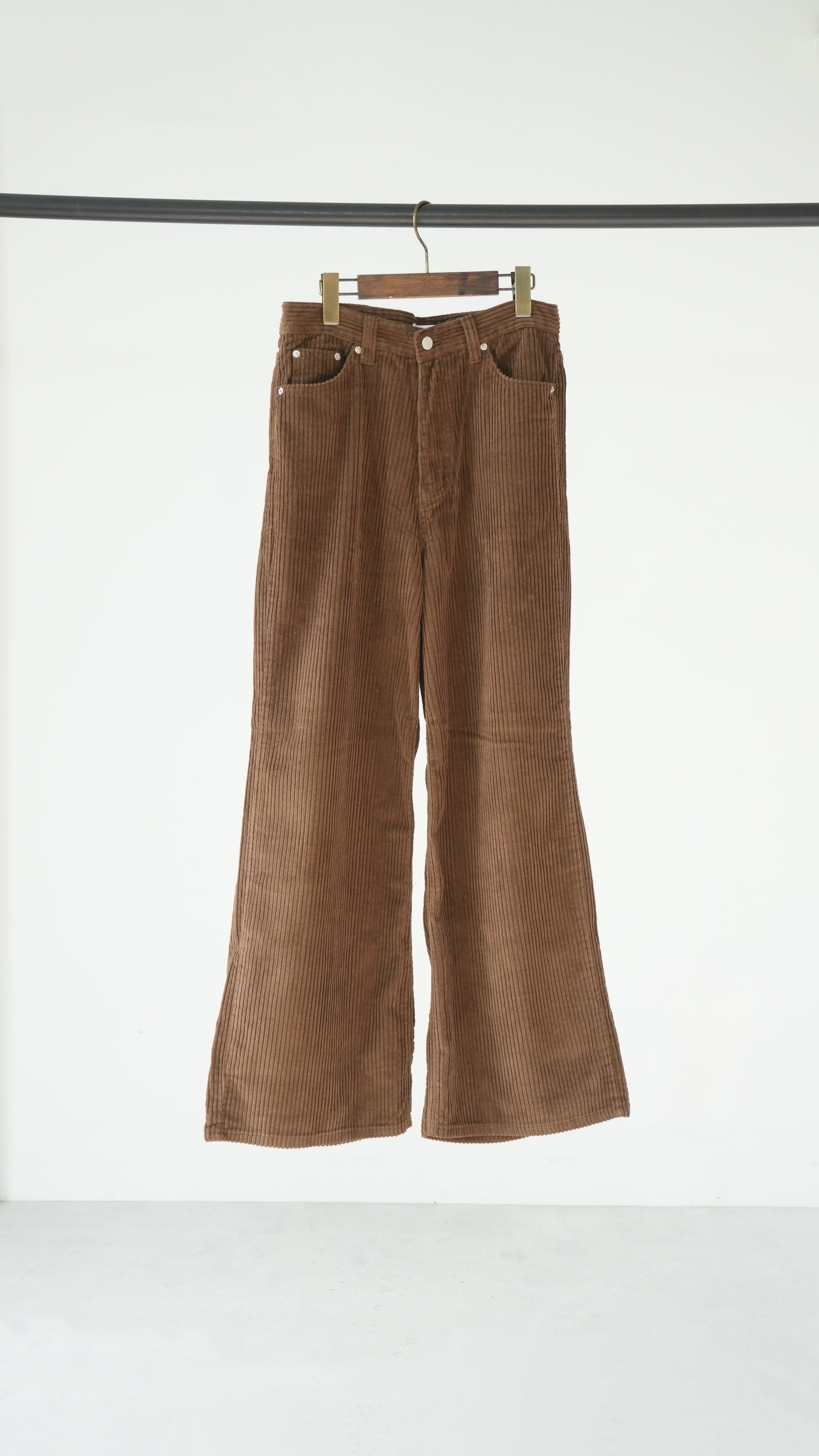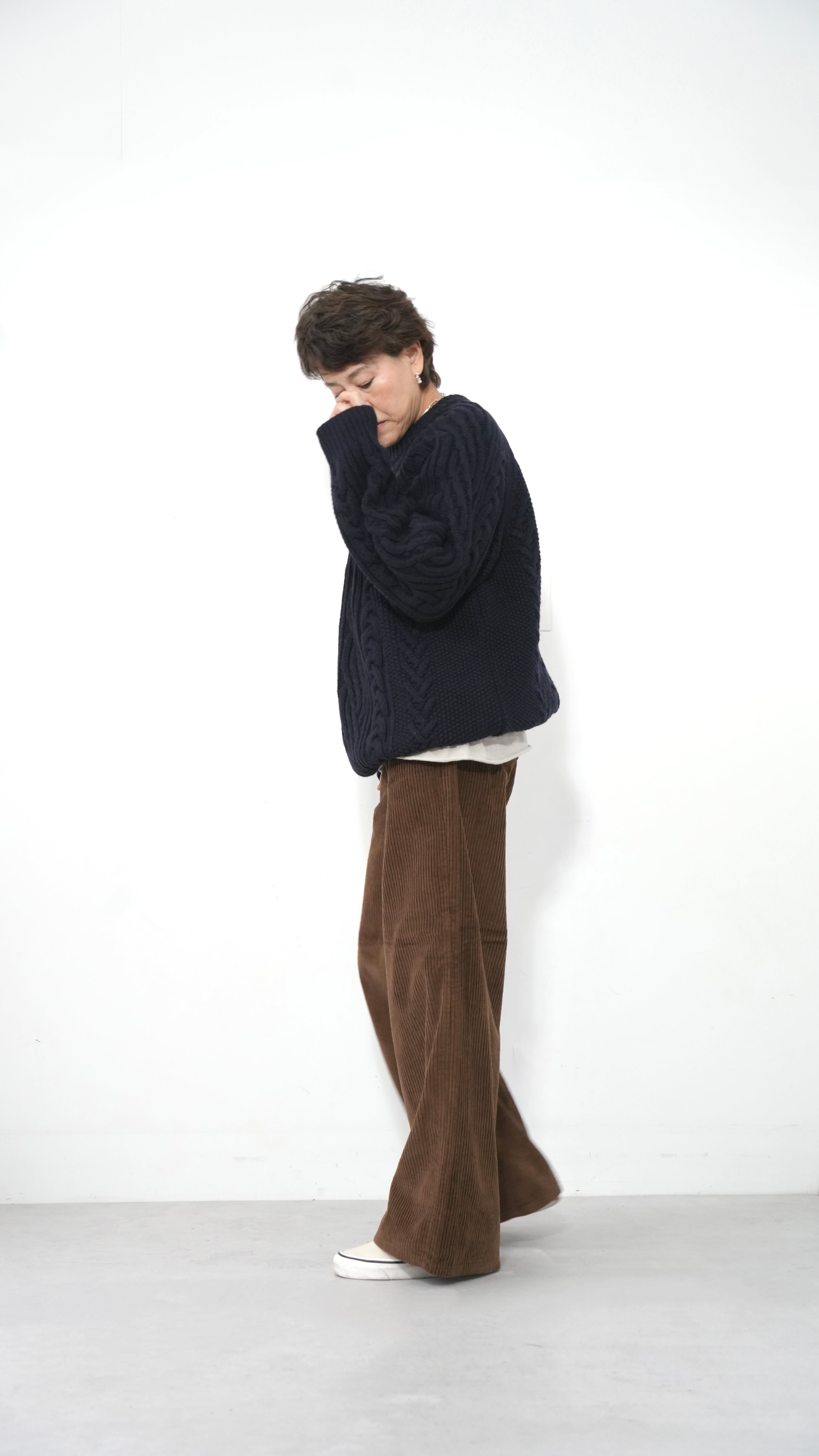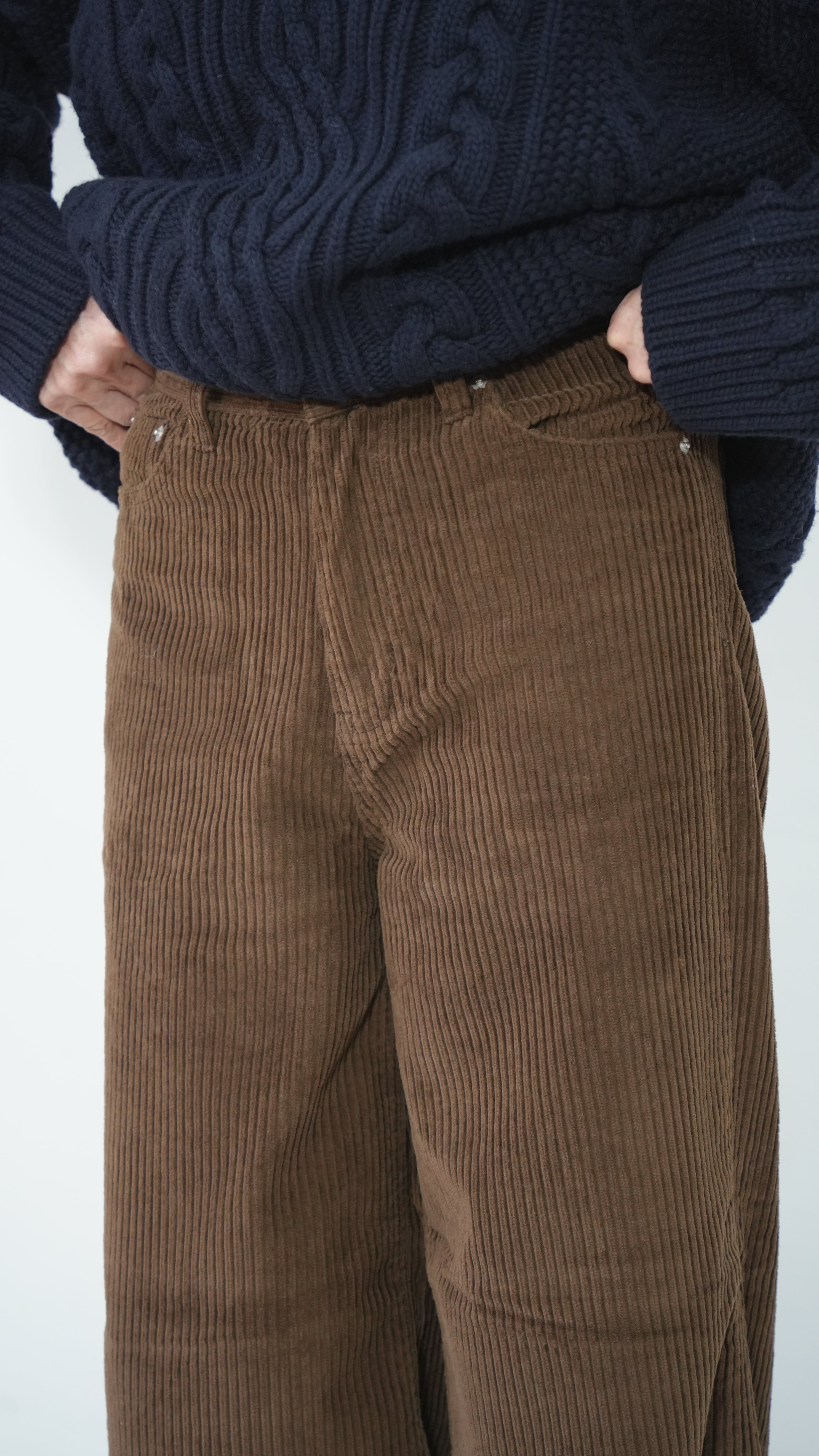 70年代を彷彿とさせるヴィンテージライクな表情があり、落ち着いたカラーが、大人の落ち着いた雰囲気を感じさせるワイドパンツ。