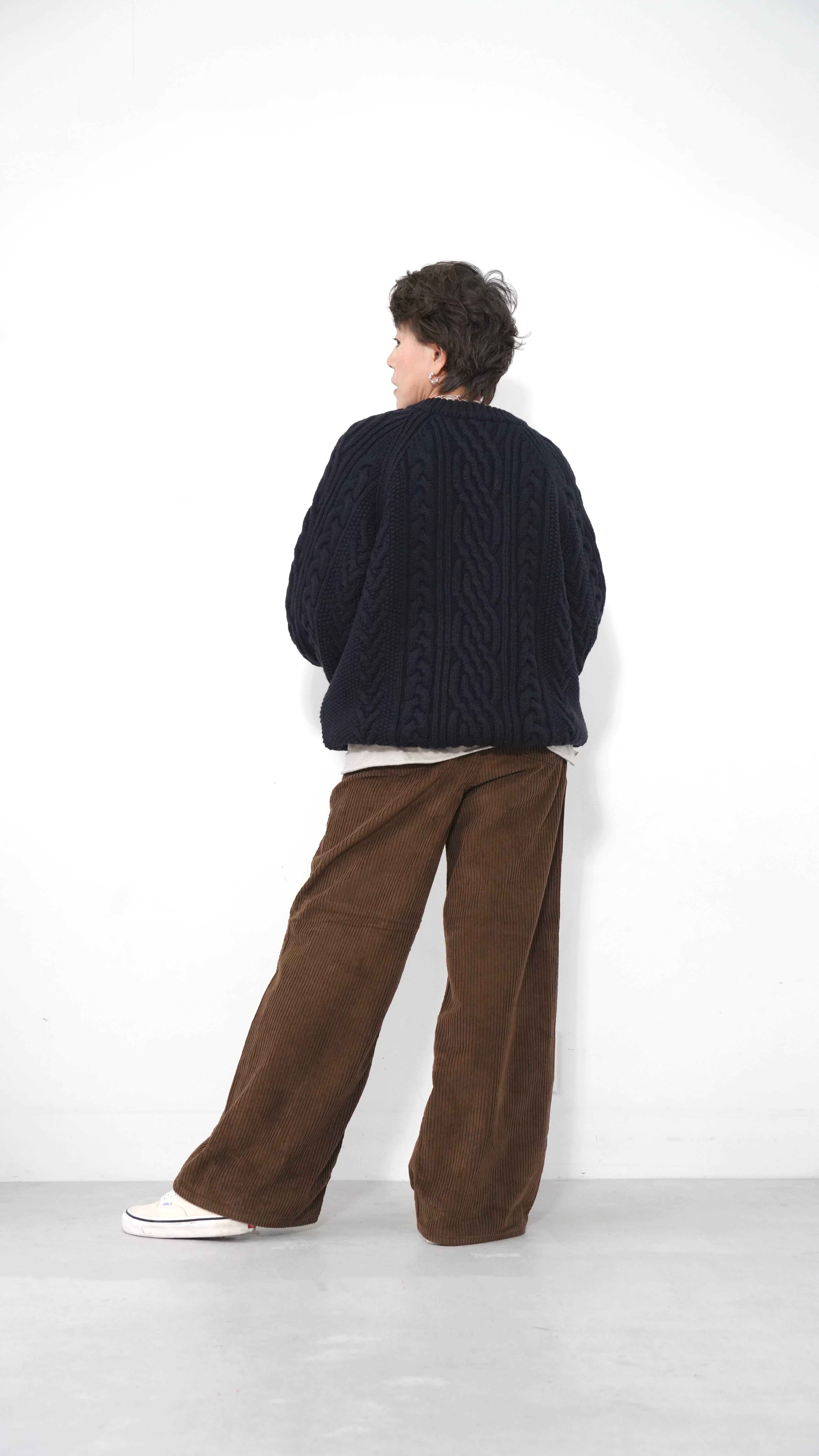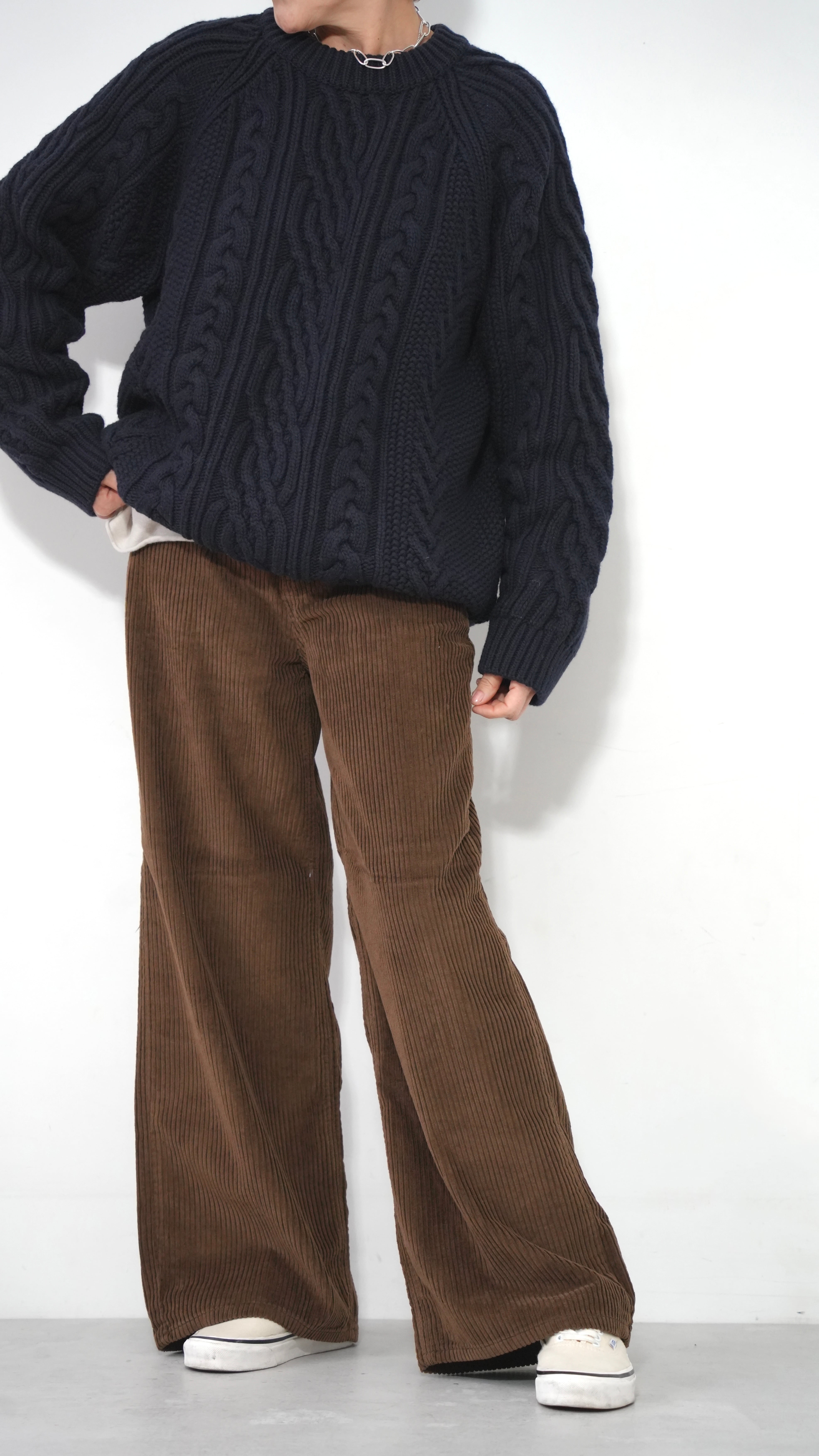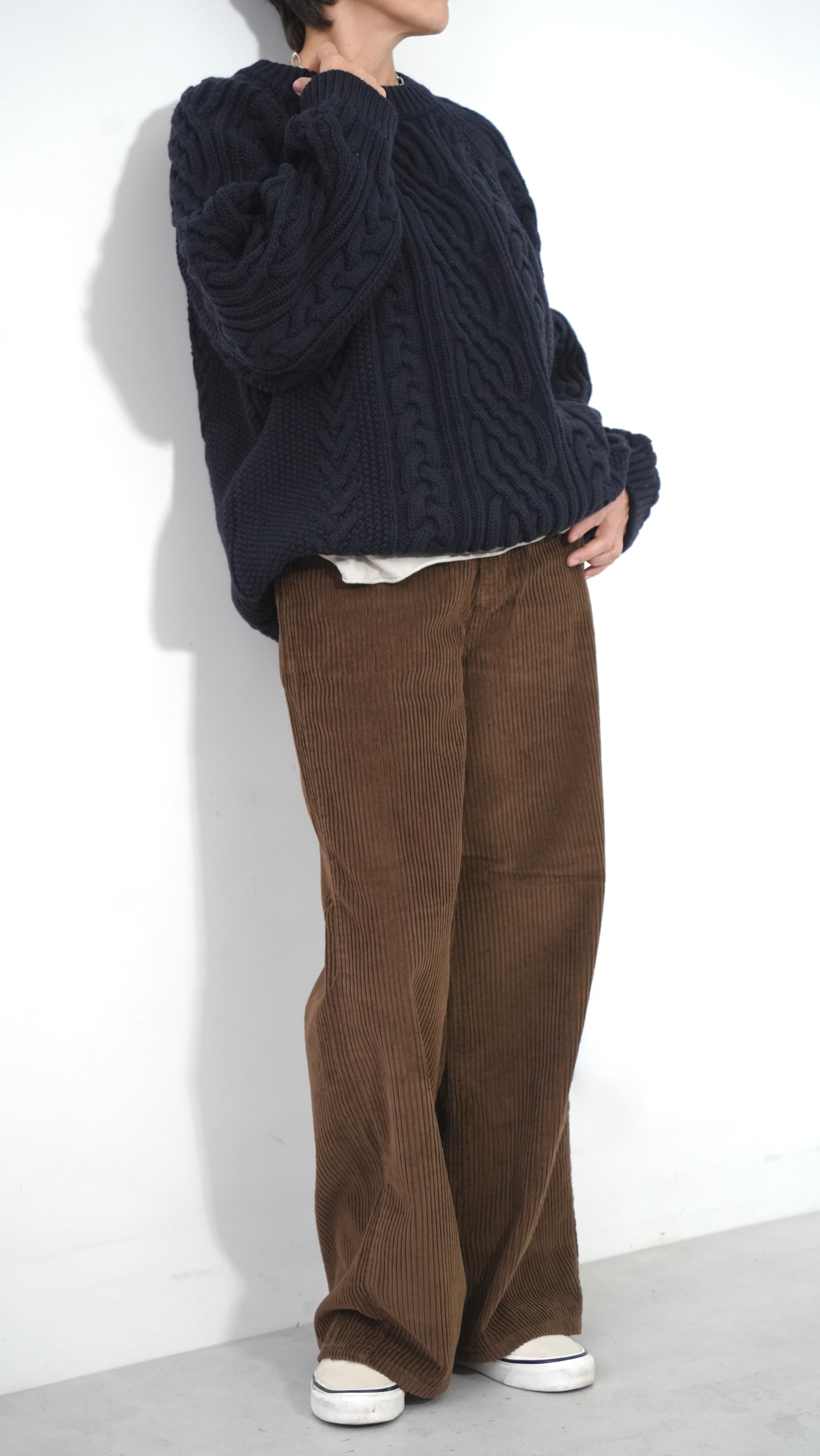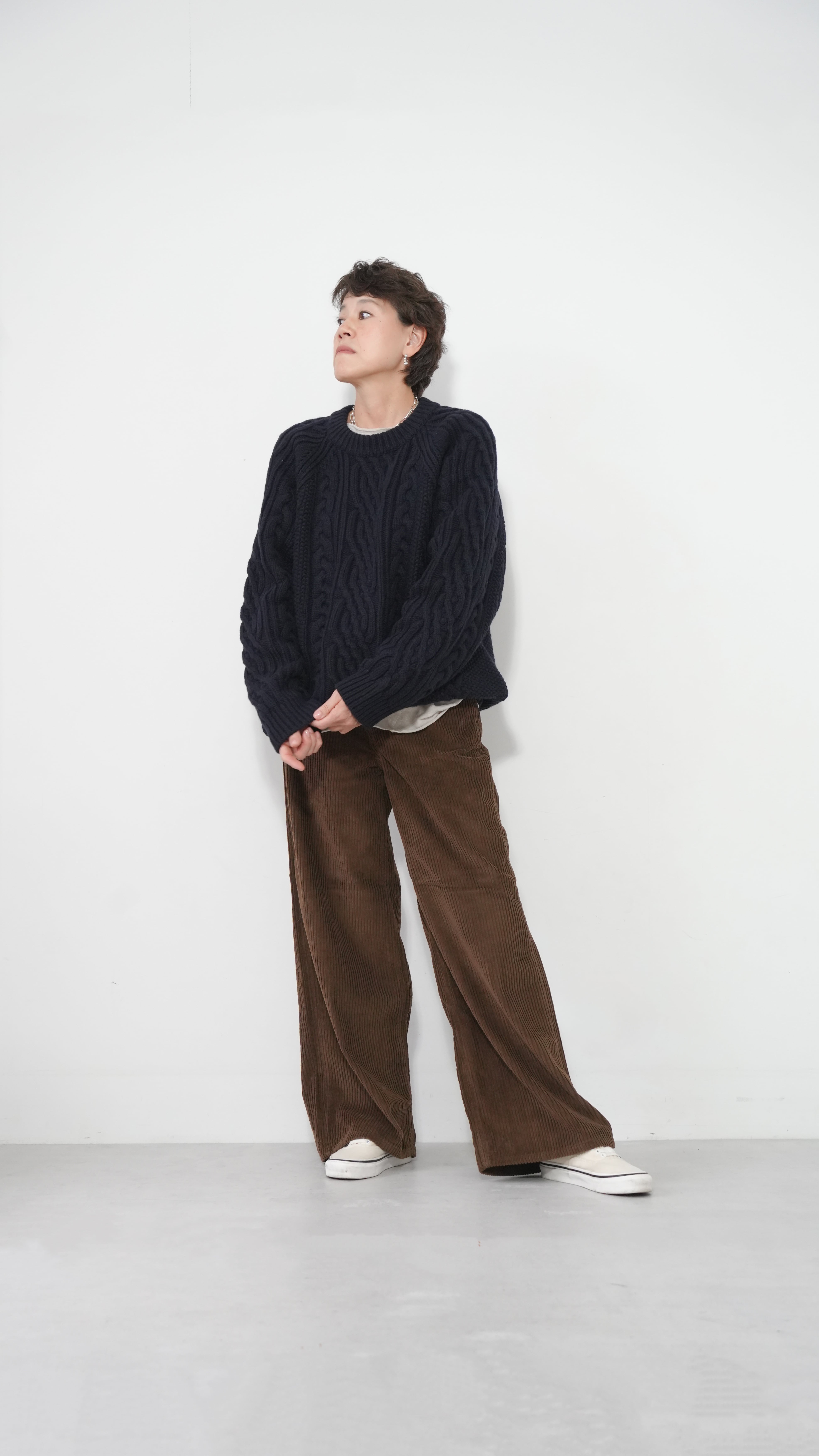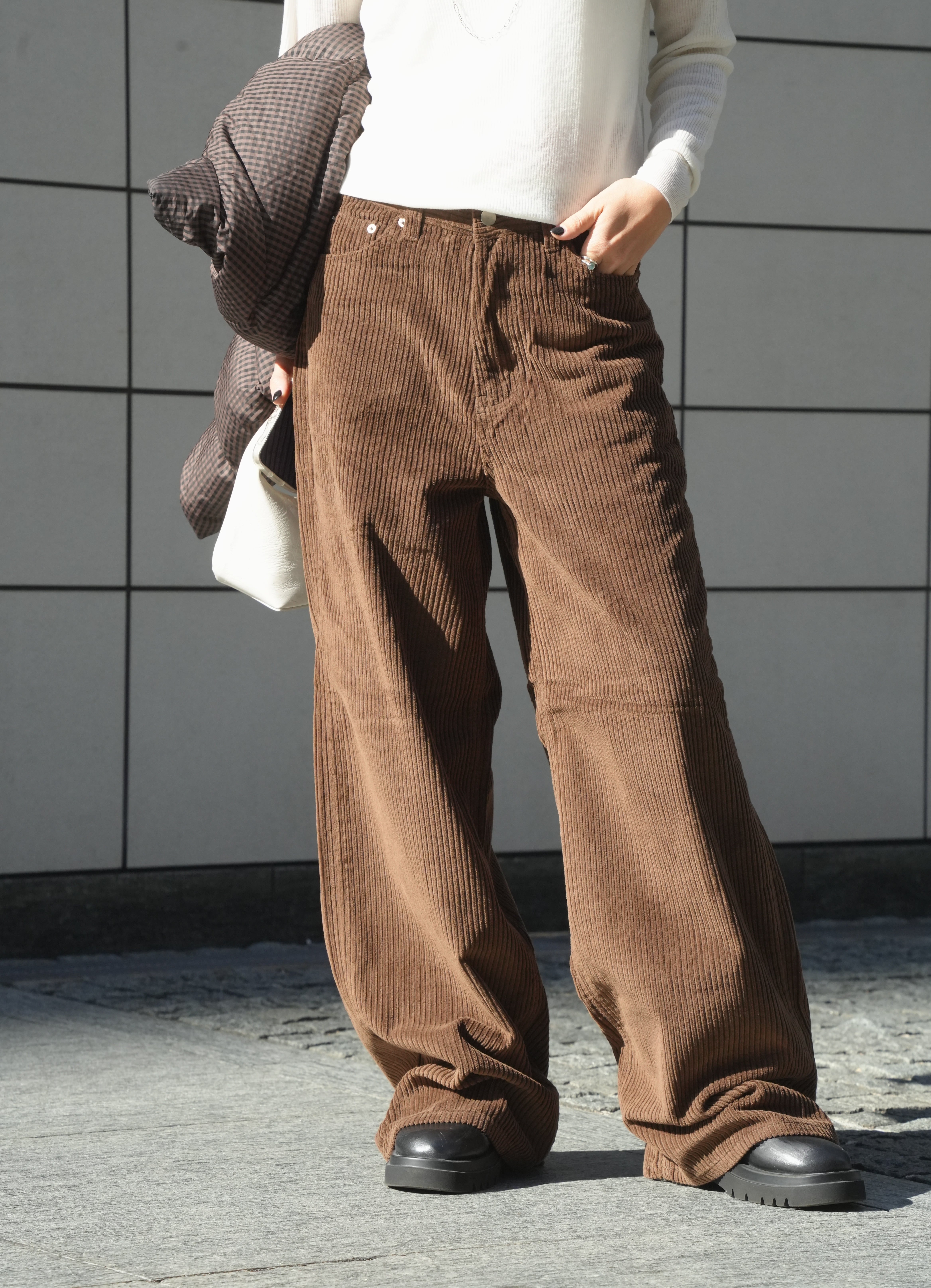 70年代を彷彿とさせるヴィンテージライクな表情があり、落ち着いたカラーが、大人の落ち着いた雰囲気を感じさせるワイドパンツ。